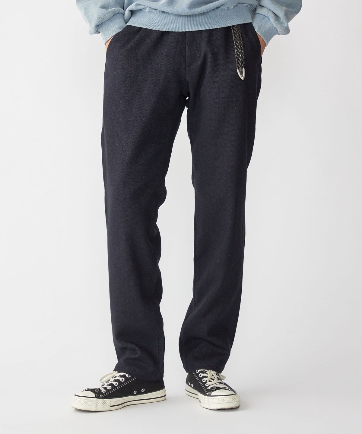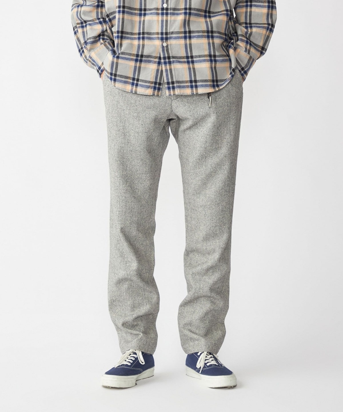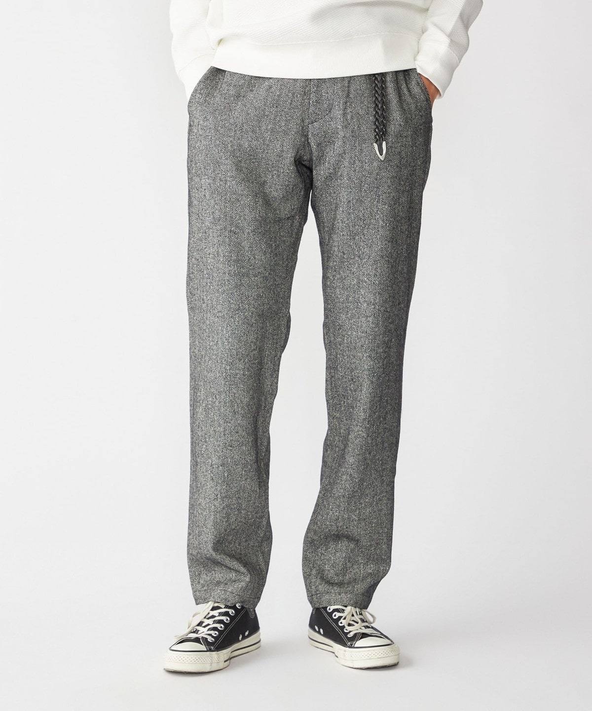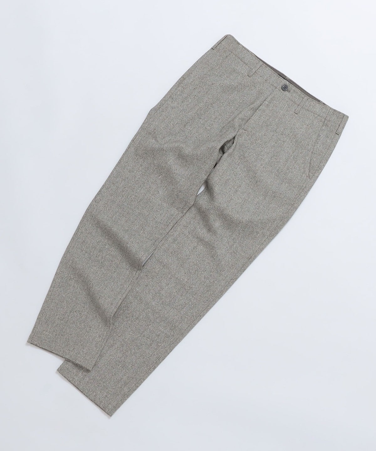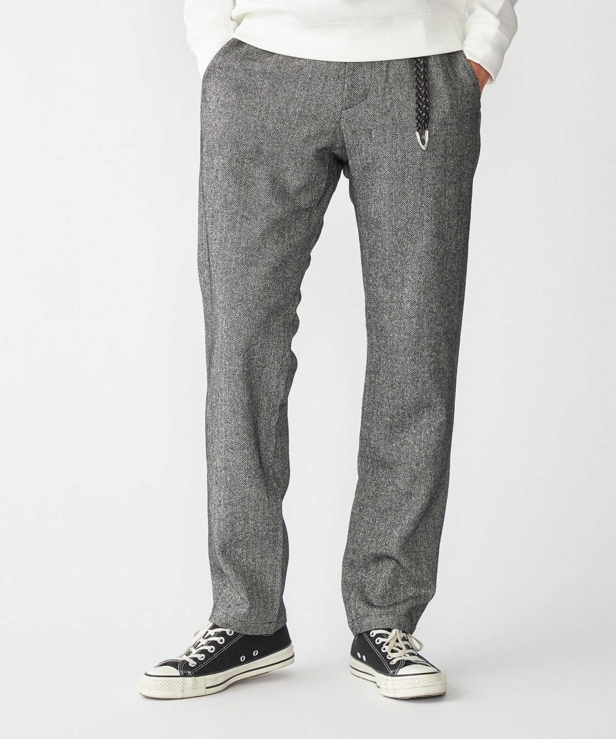 ヒップからももにかけて適度なゆとりを持たせ、膝から裾へかけては徐々に細くなるテーパードシルエット。