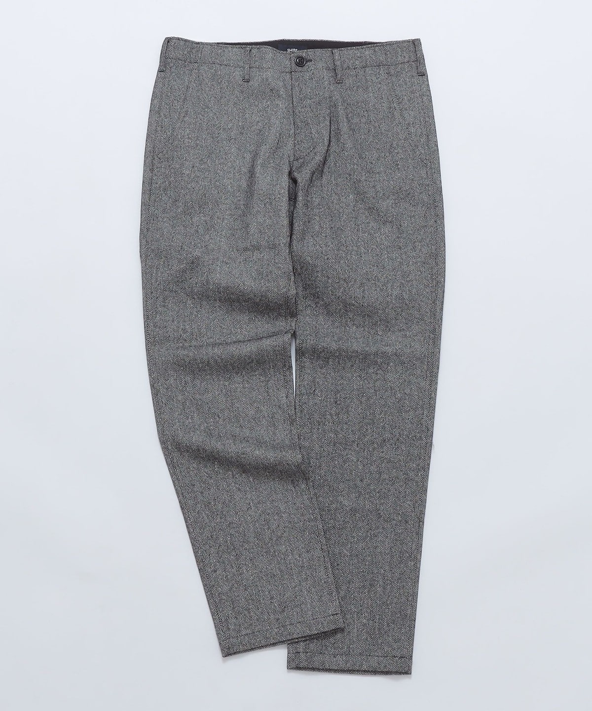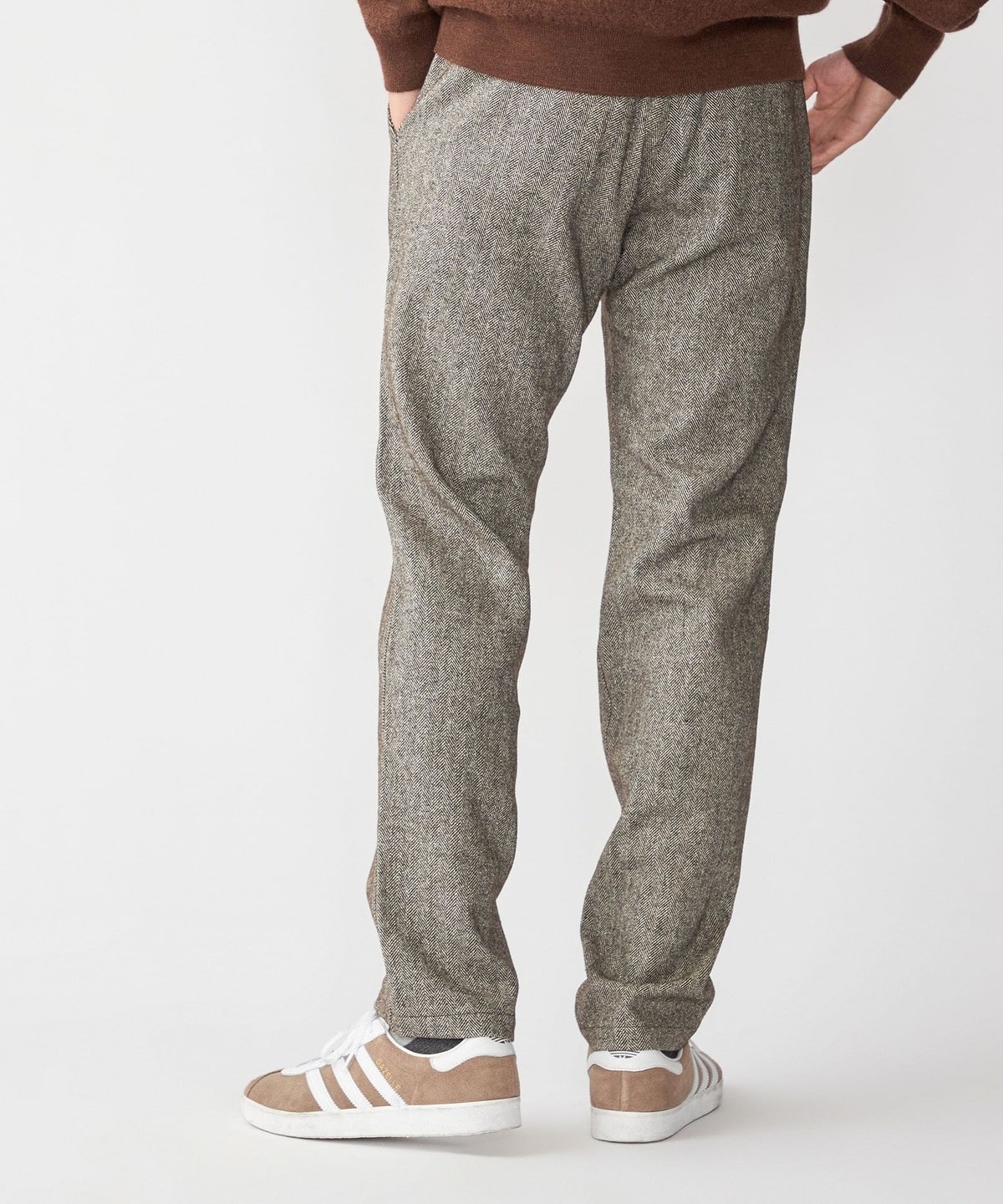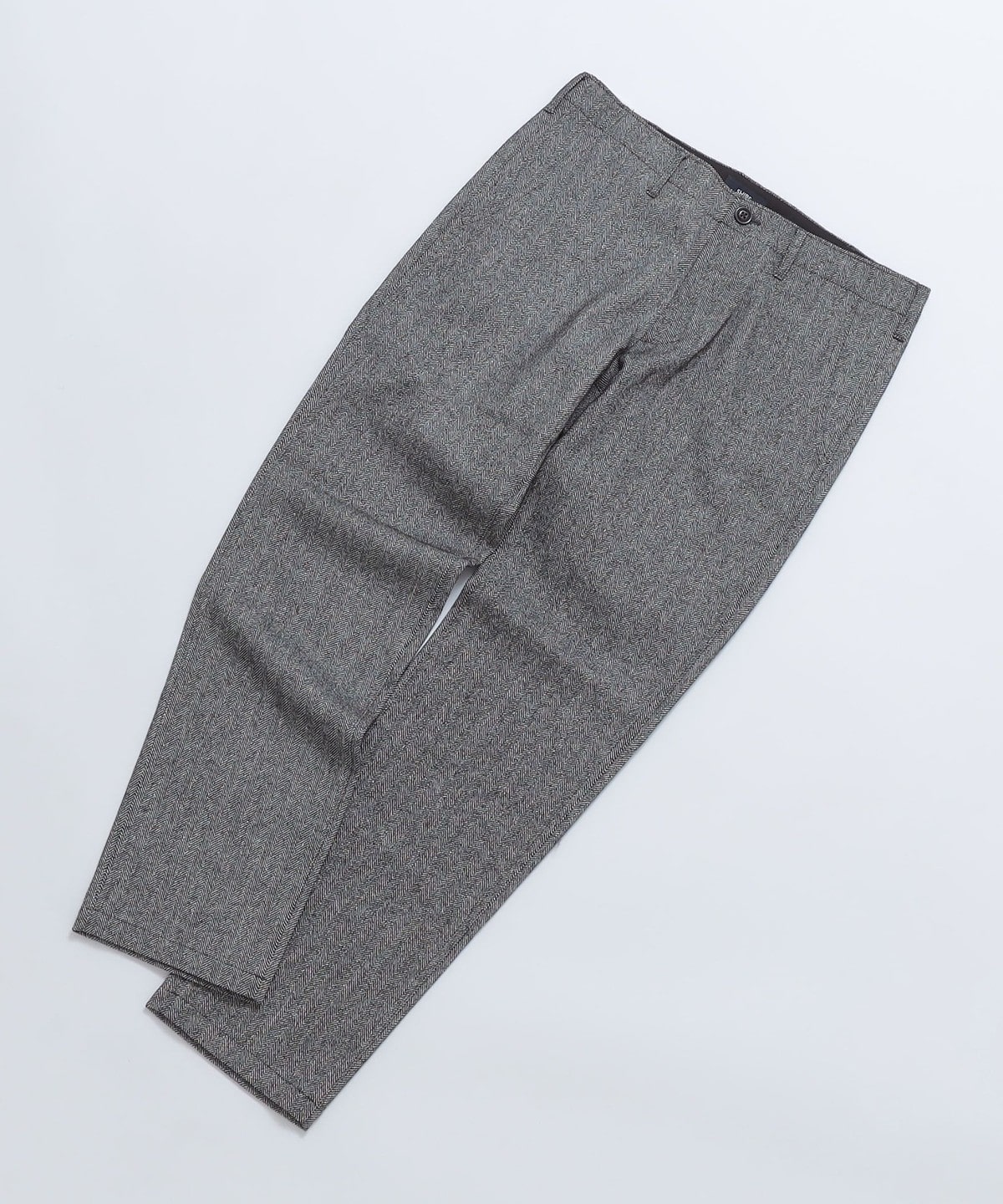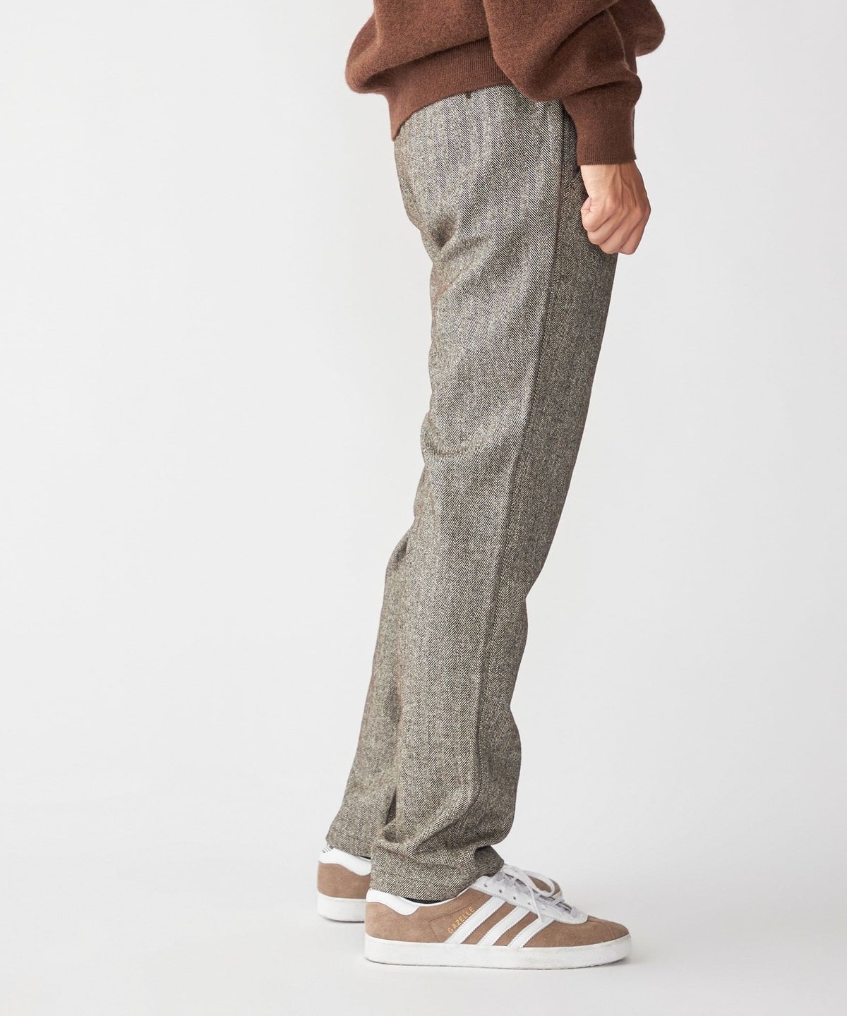 ヒップからももにかけて適度なゆとりを持たせ、膝から裾へかけては徐々に細くなるテーパードシルエット。