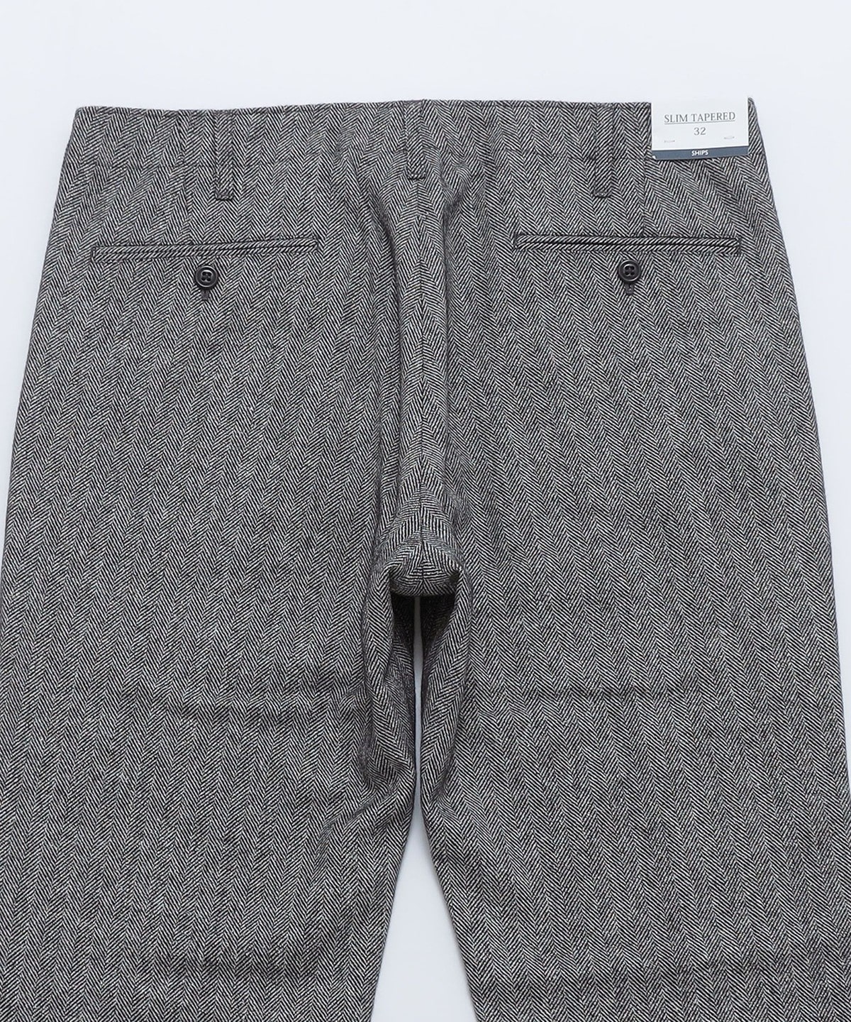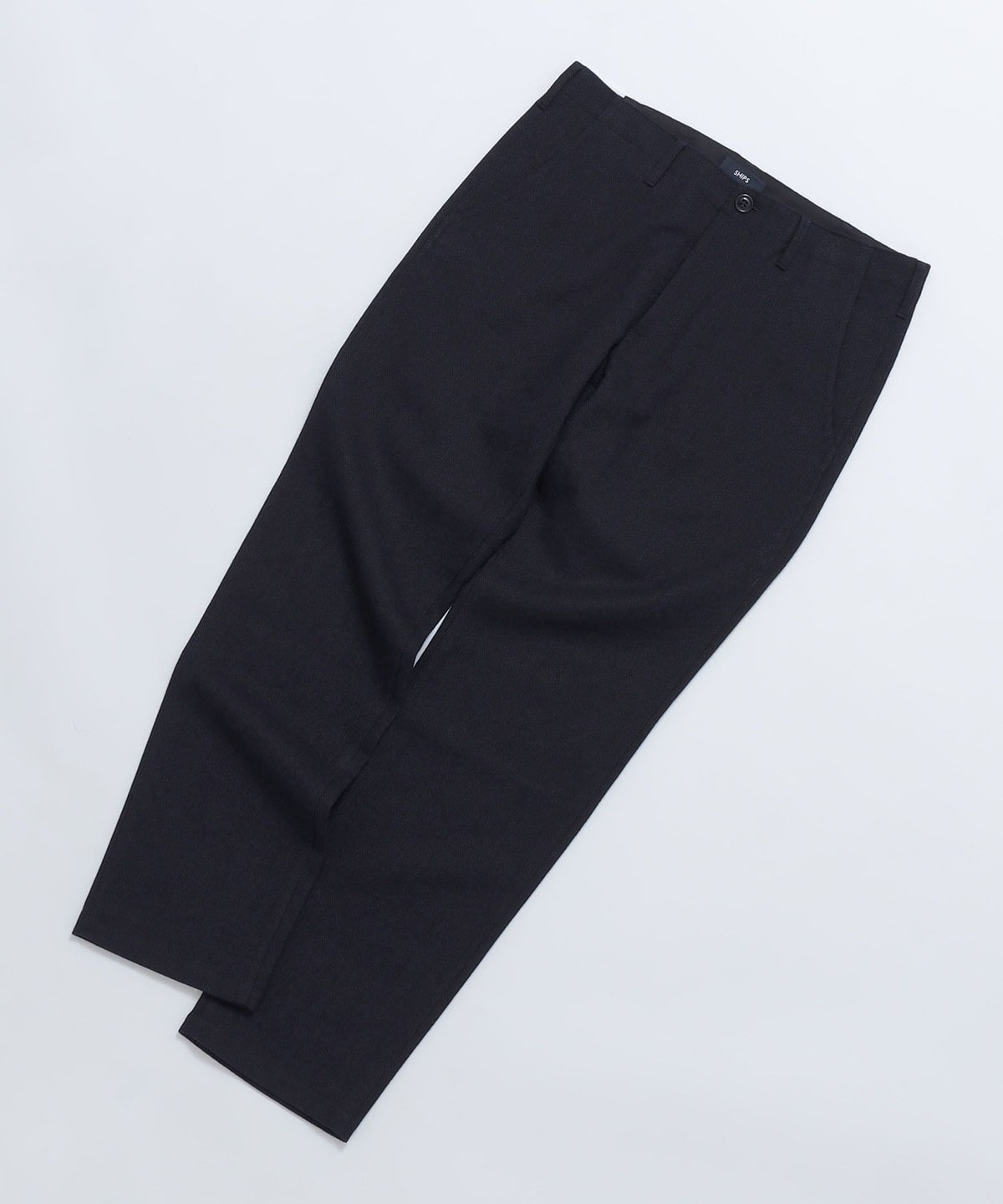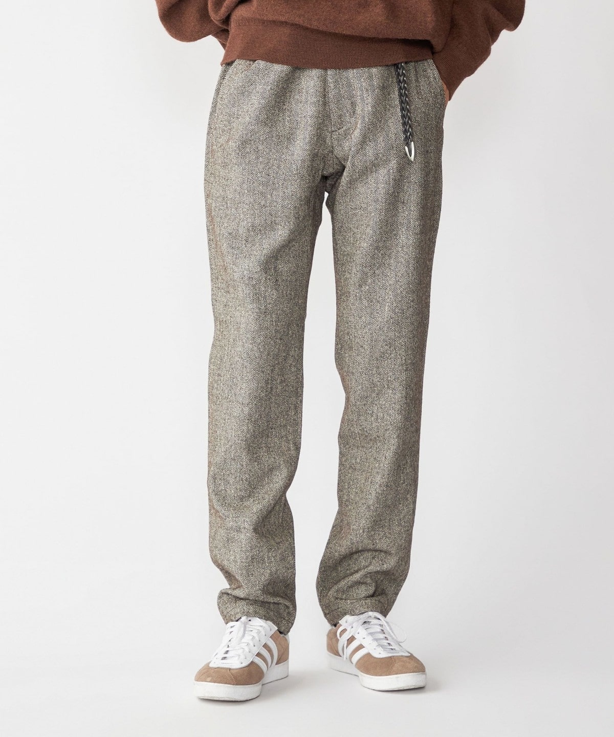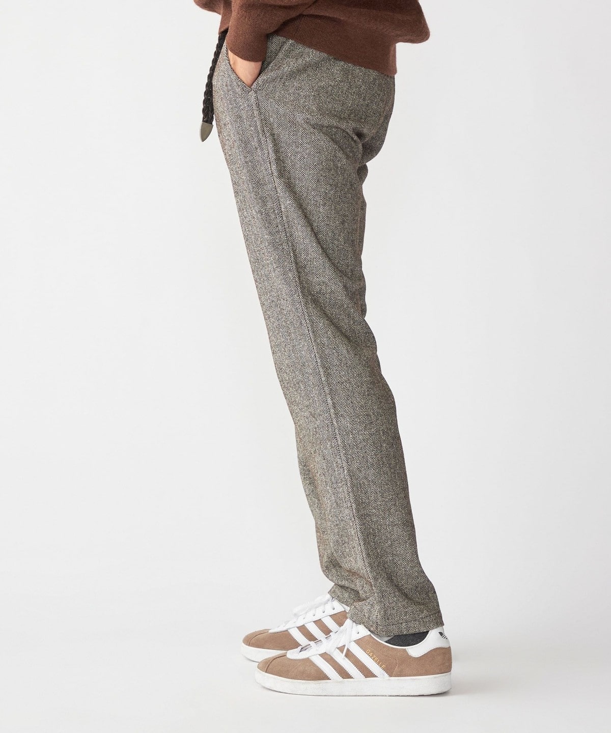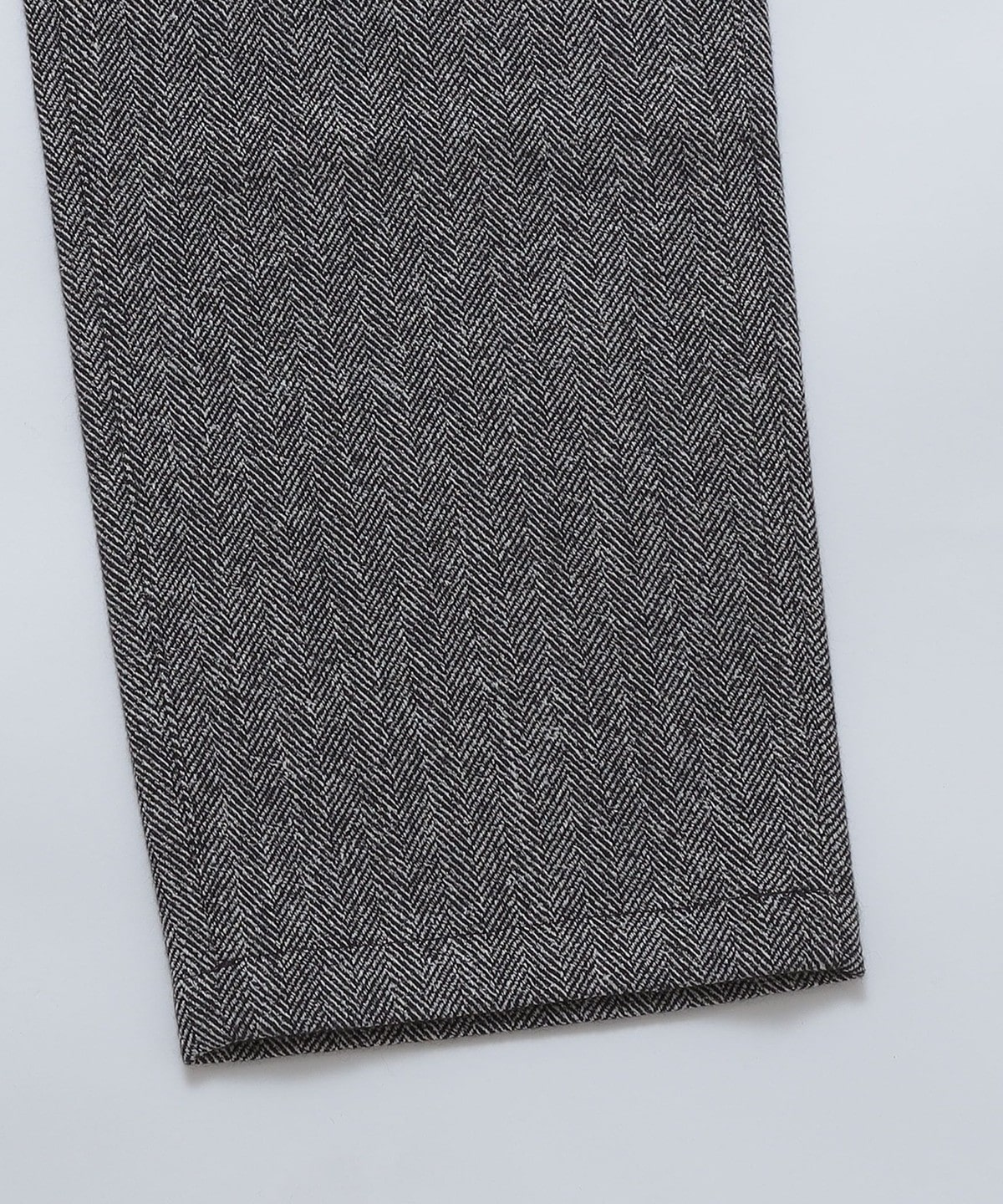ヒップからももにかけて適度なゆとりを持たせ、膝から裾へかけては徐々に細くなるテーパードシルエット。