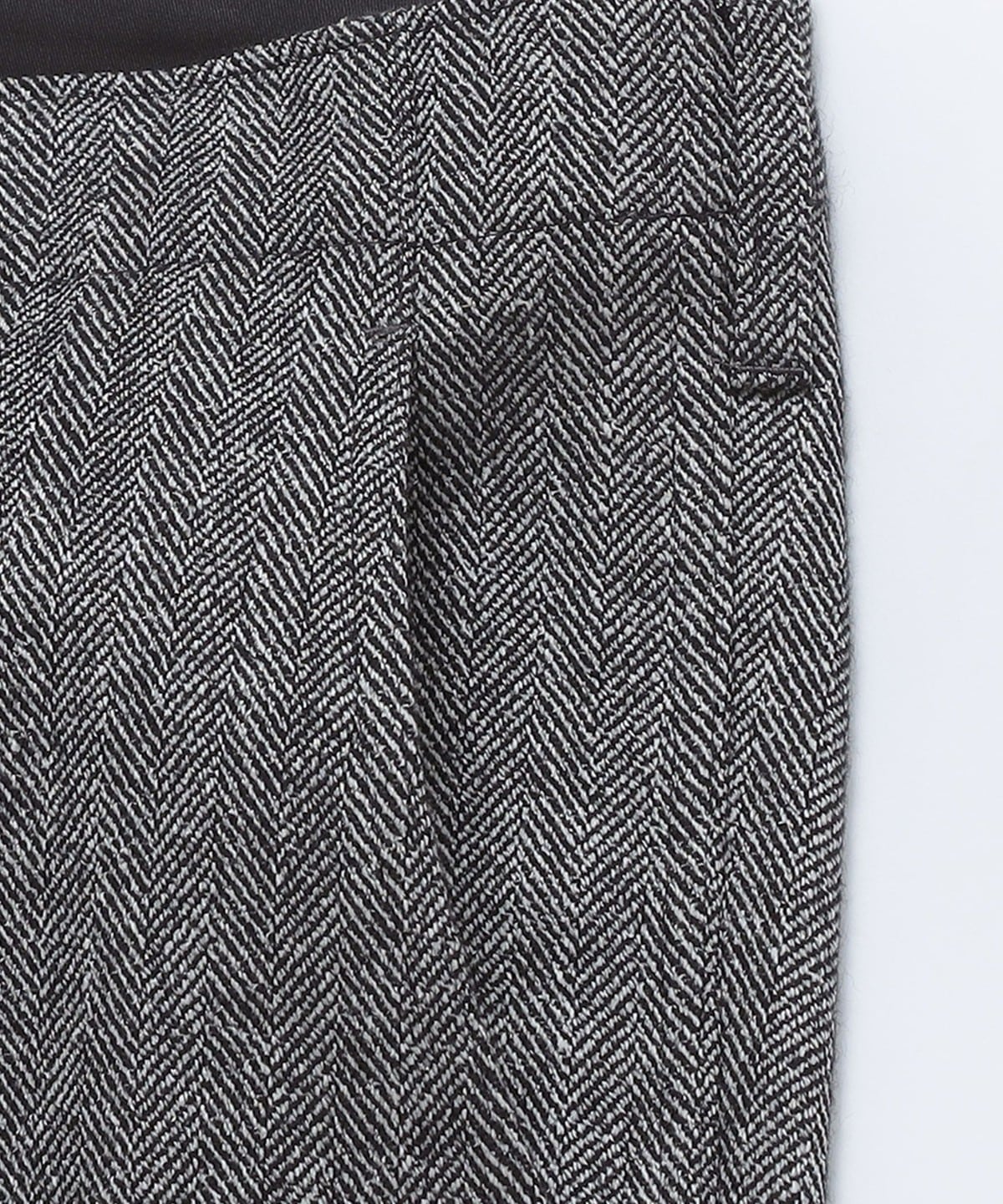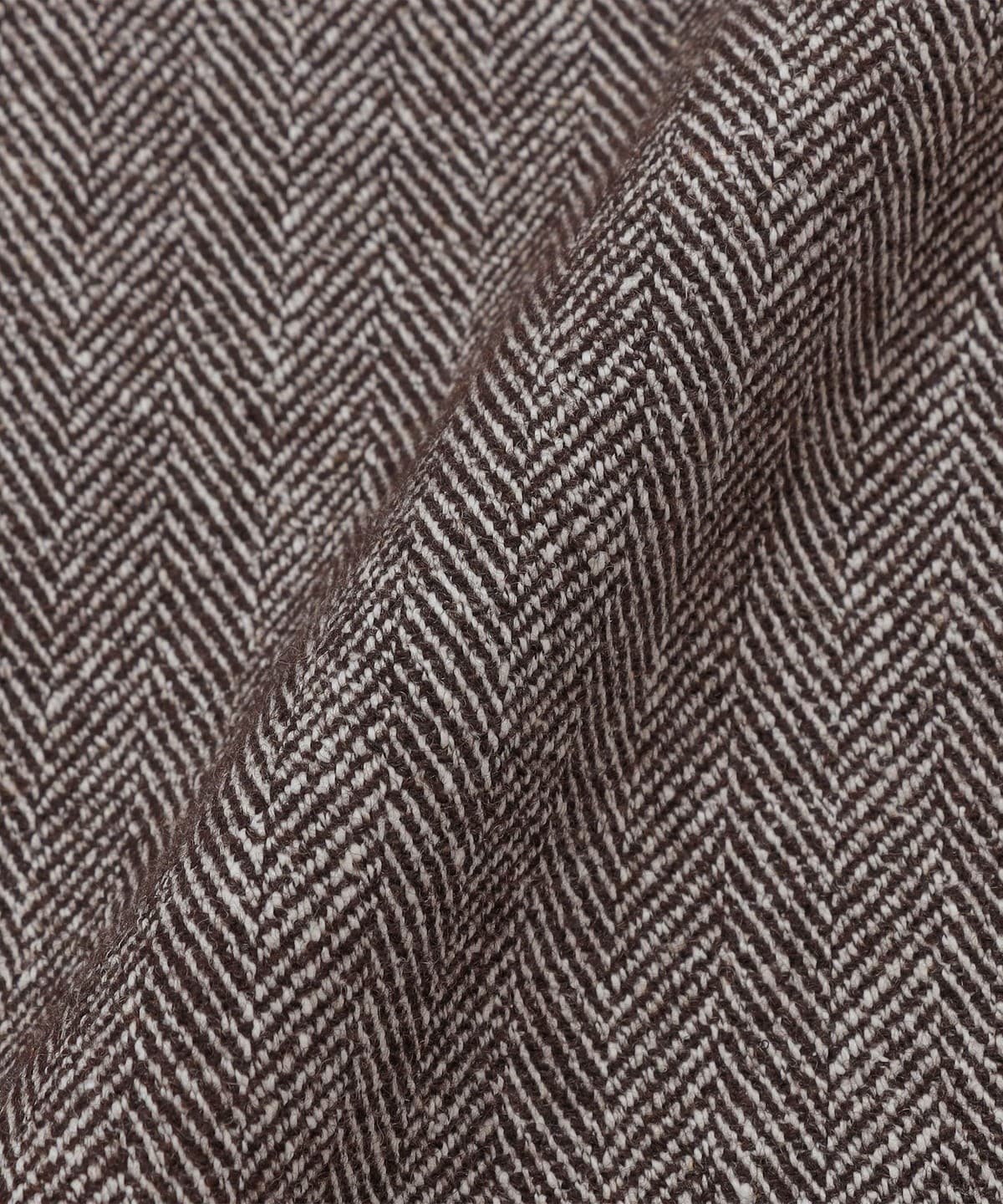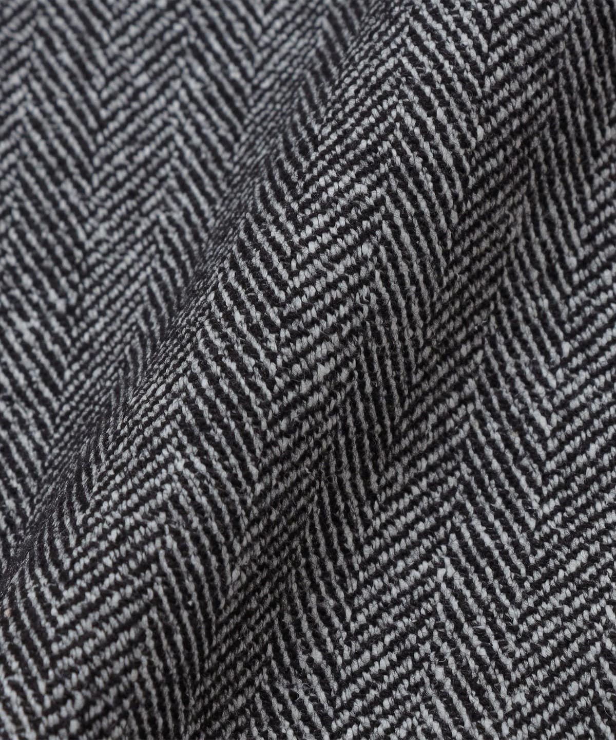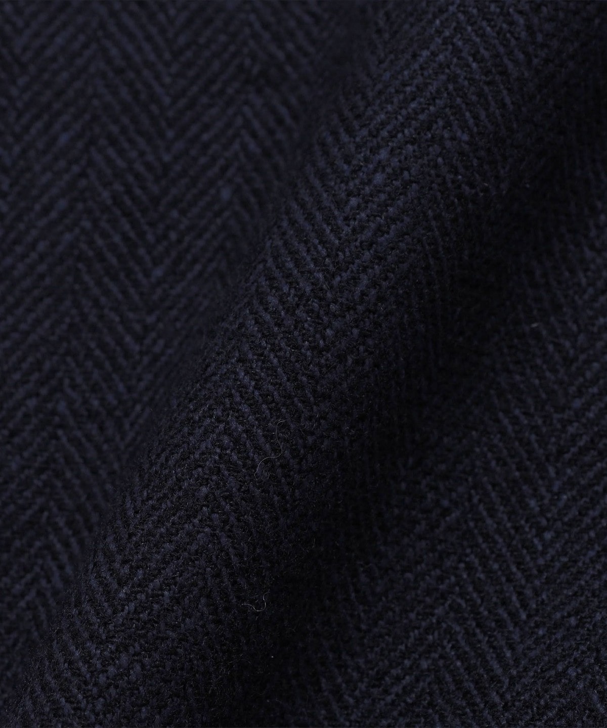 ウォッシャブル加工が施されたシルクウールストレッチのヘリンボーン素材を使用。