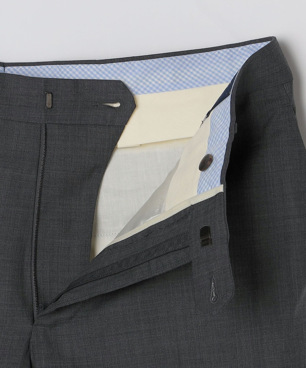 仕様: ノープリーツ、テーパードシルエット、スラントポケット。