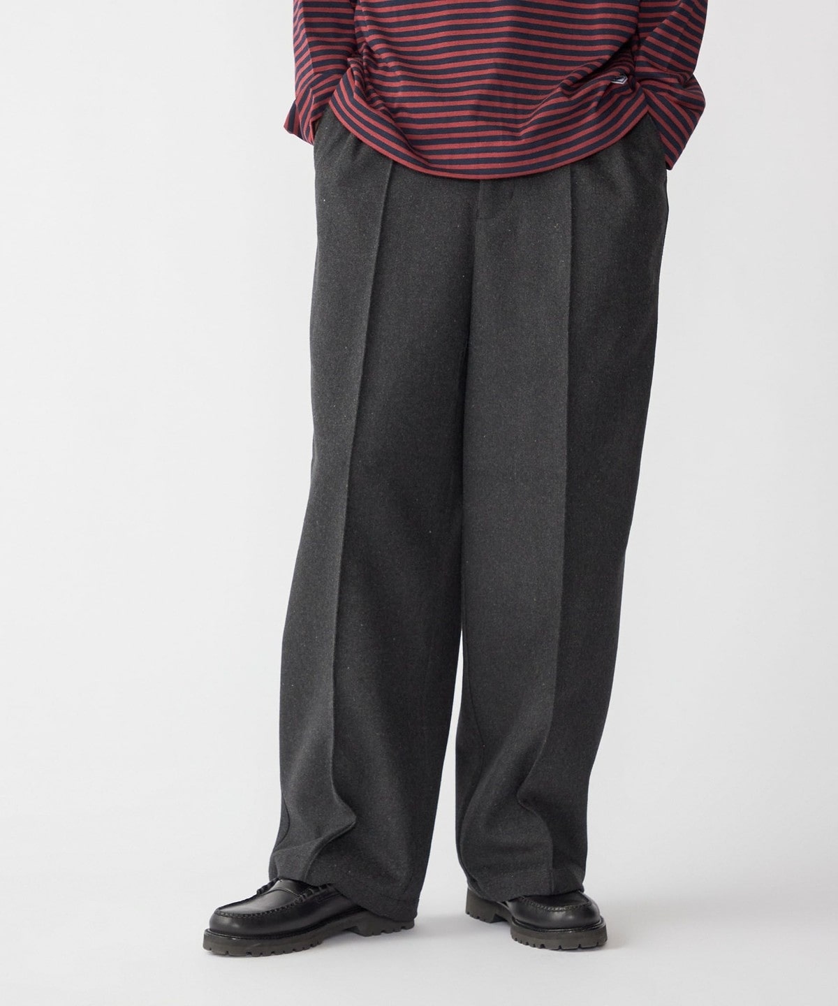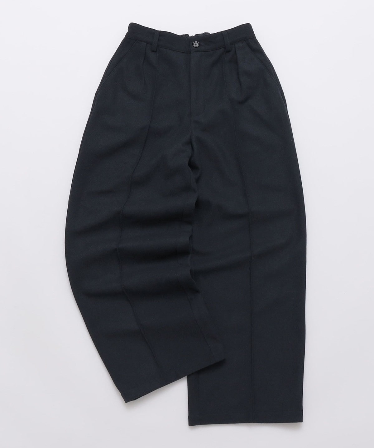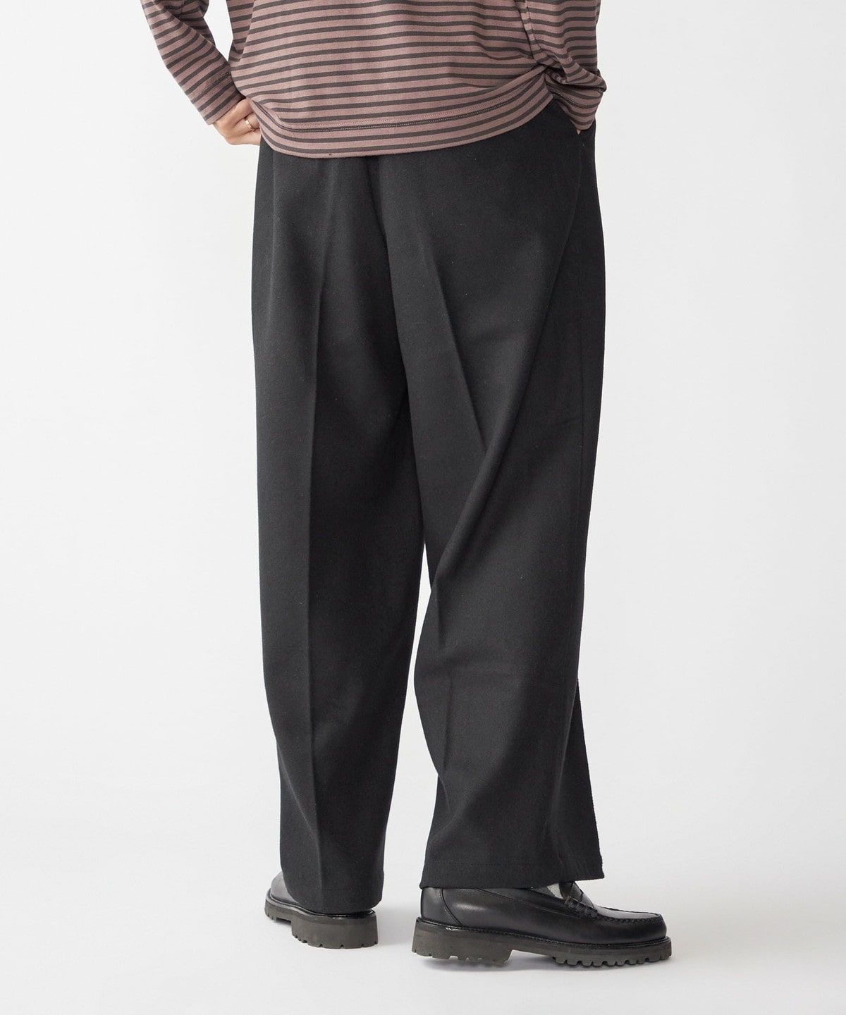 美しいワイドシルエットにて仕上げられたWEB限定展開のスラックス