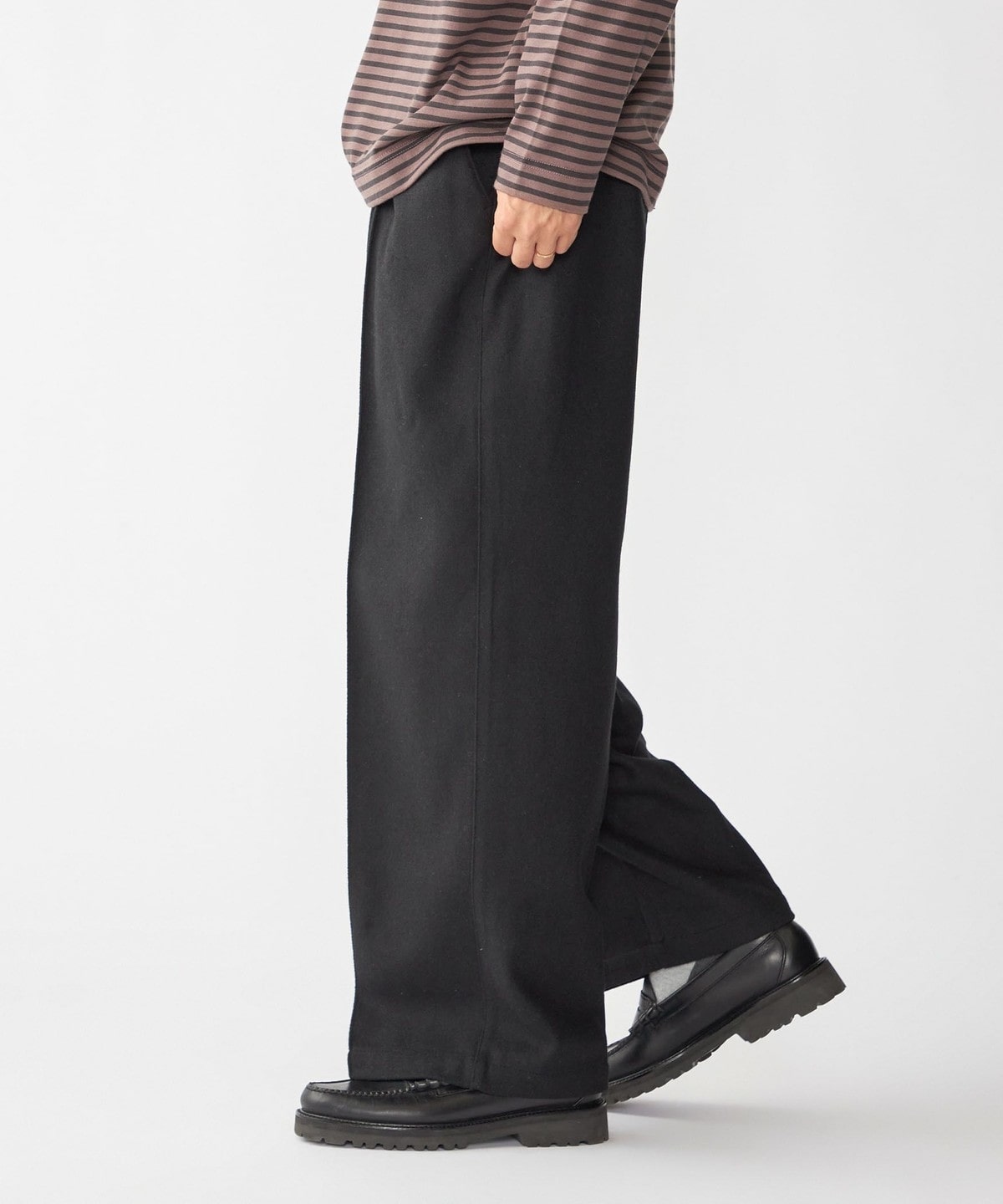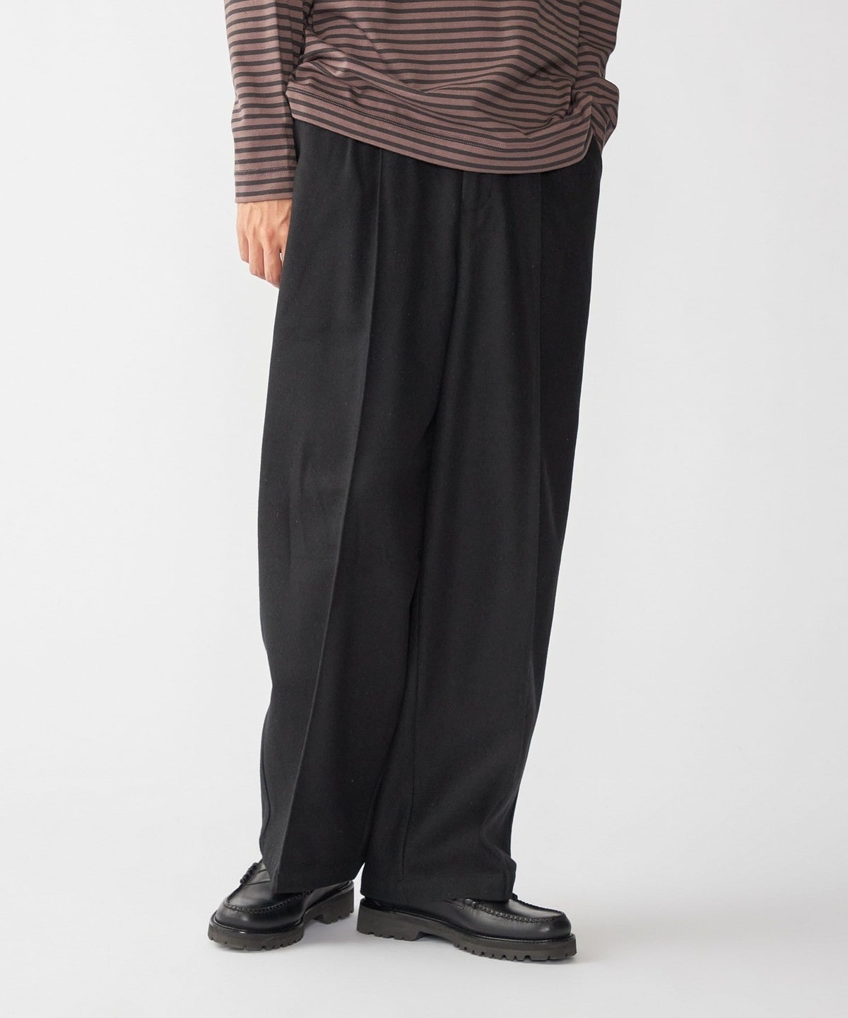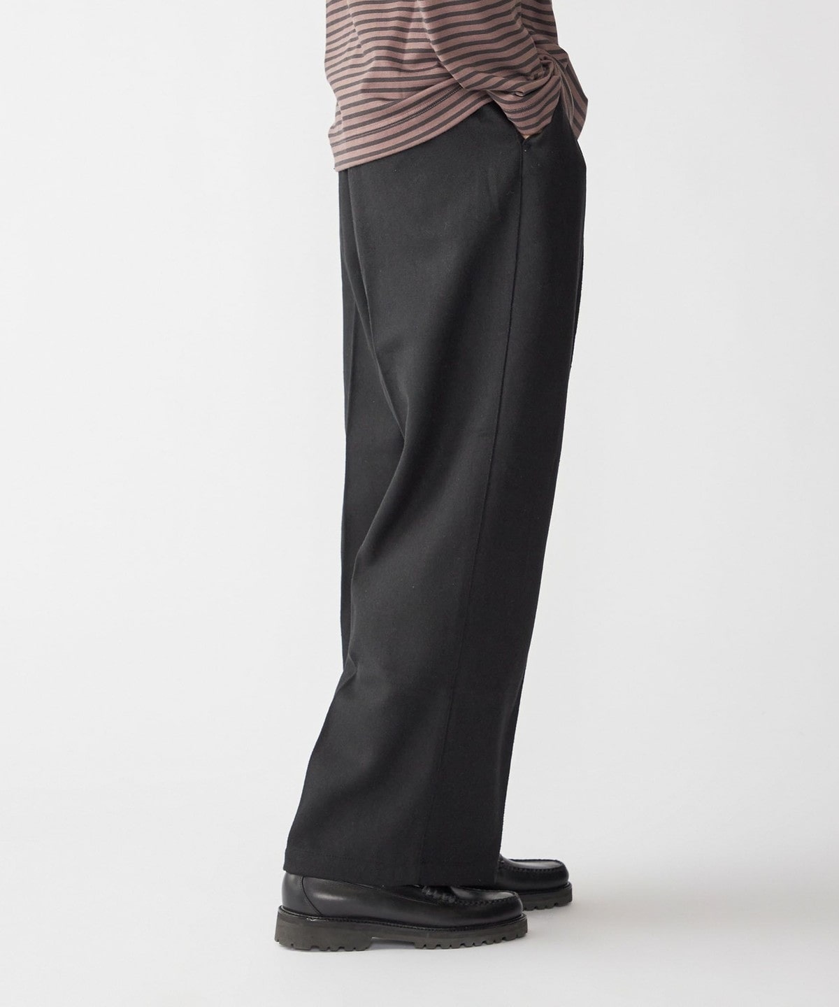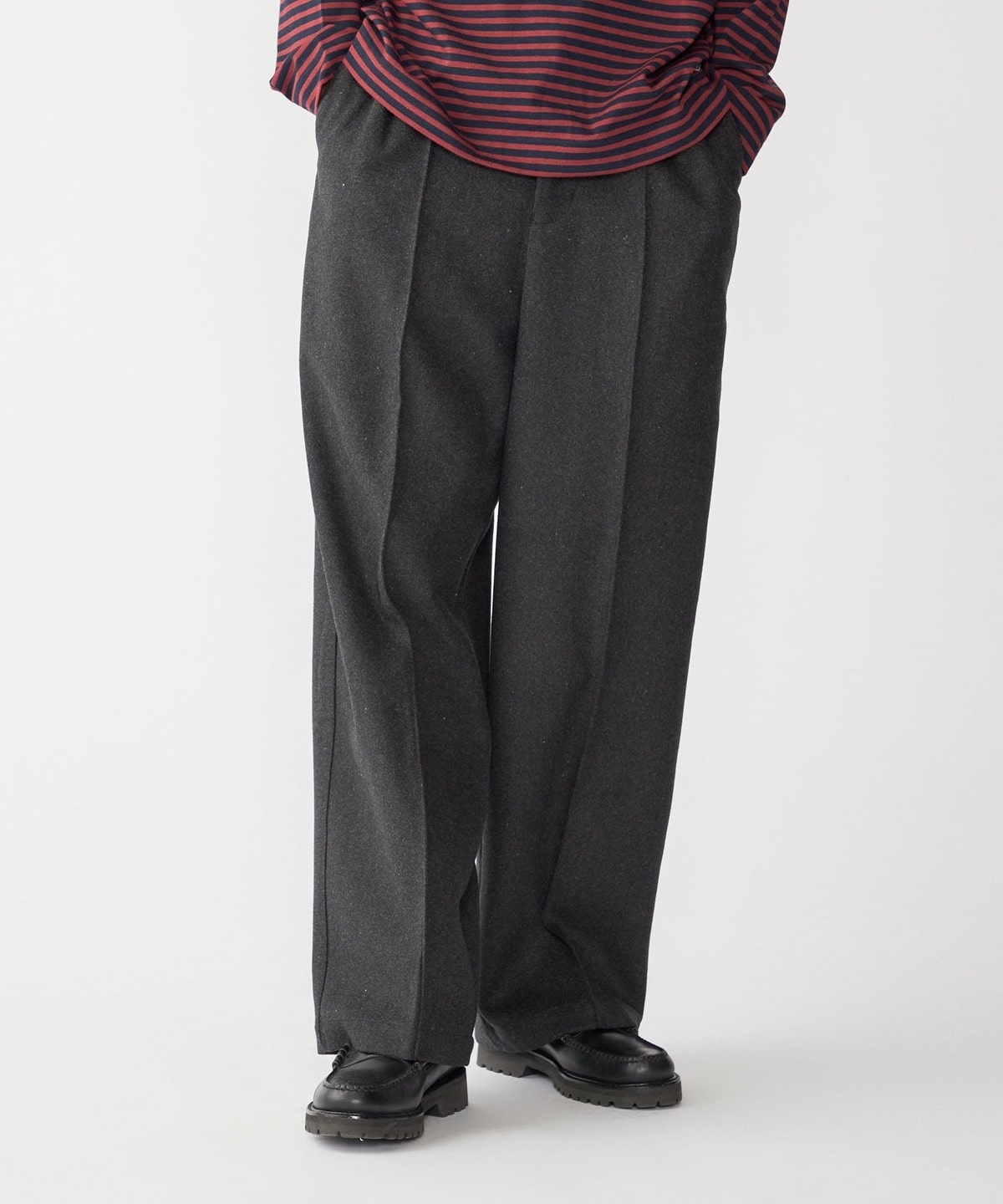 美しいワイドシルエットにて仕上げられたWEB限定展開のスラックス