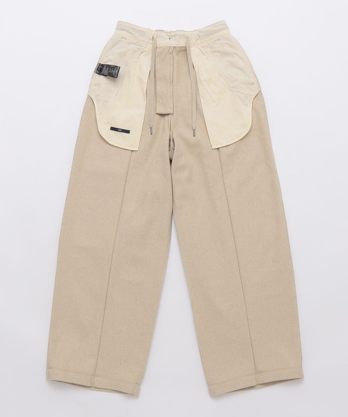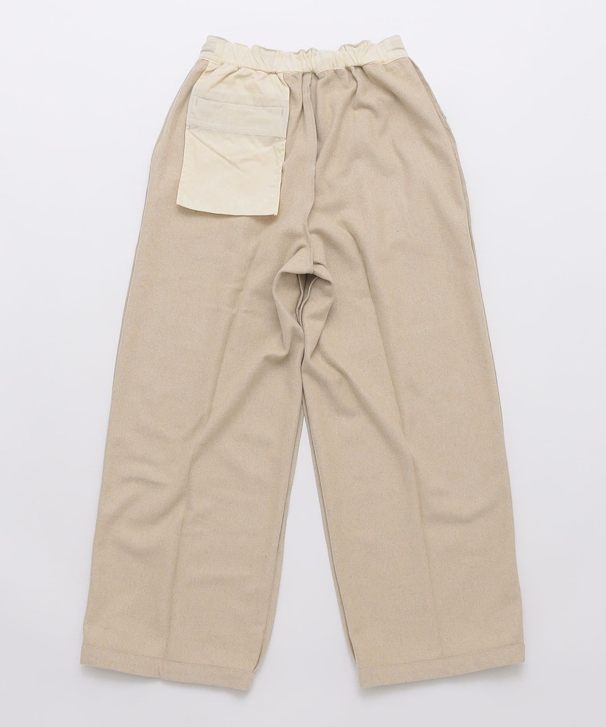 ウエスト部分は後身頃のみゴム仕様にして、内側のドローストリング(紐)で調整が可能。