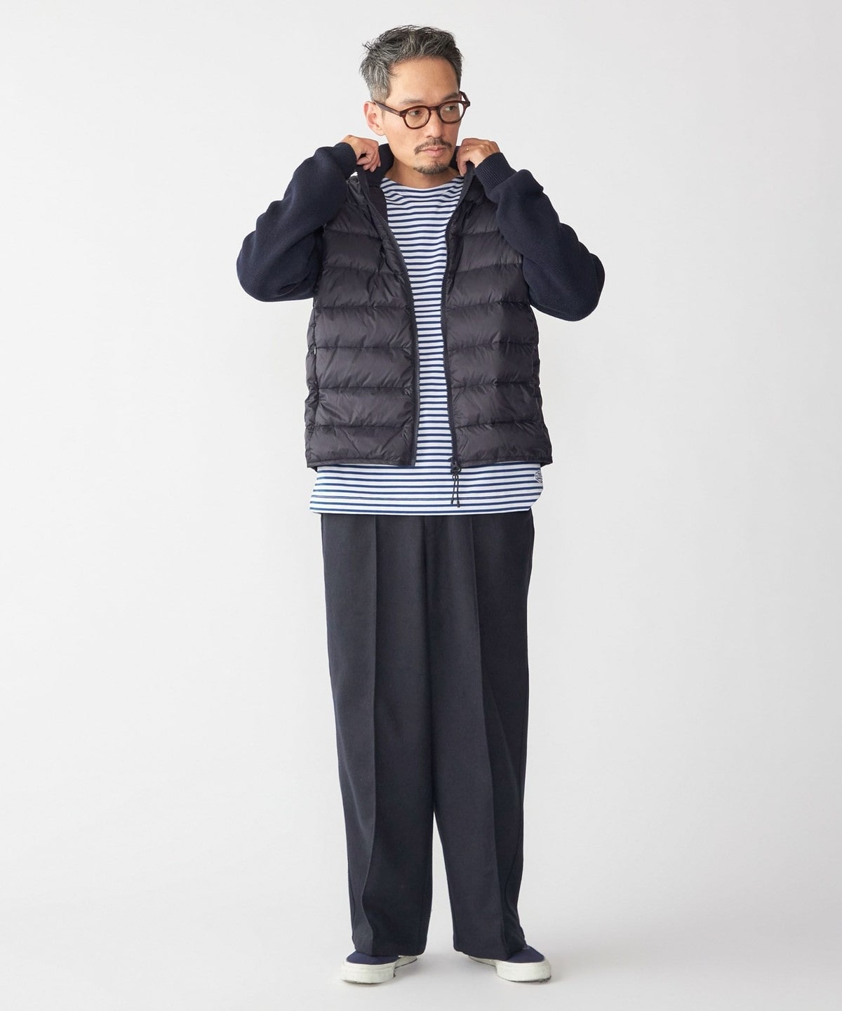 ダウンやコートの重衣料は勿論、シャツやニットにも合わせていただける一本あれば間違いないスタイリングが可能な汎用の高いアイテムになっています。