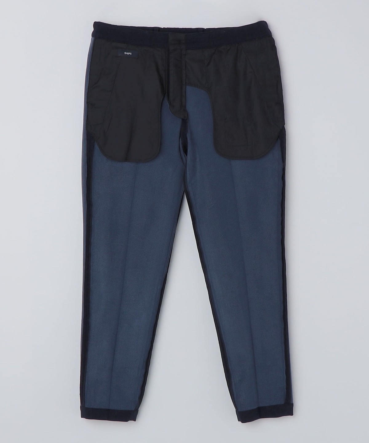 ウェストは後ろのみゴムシャーリング仕様で、前から見るとすっきりとしたスラックスデザインになっているので、シャツをインして合わせても様になります。