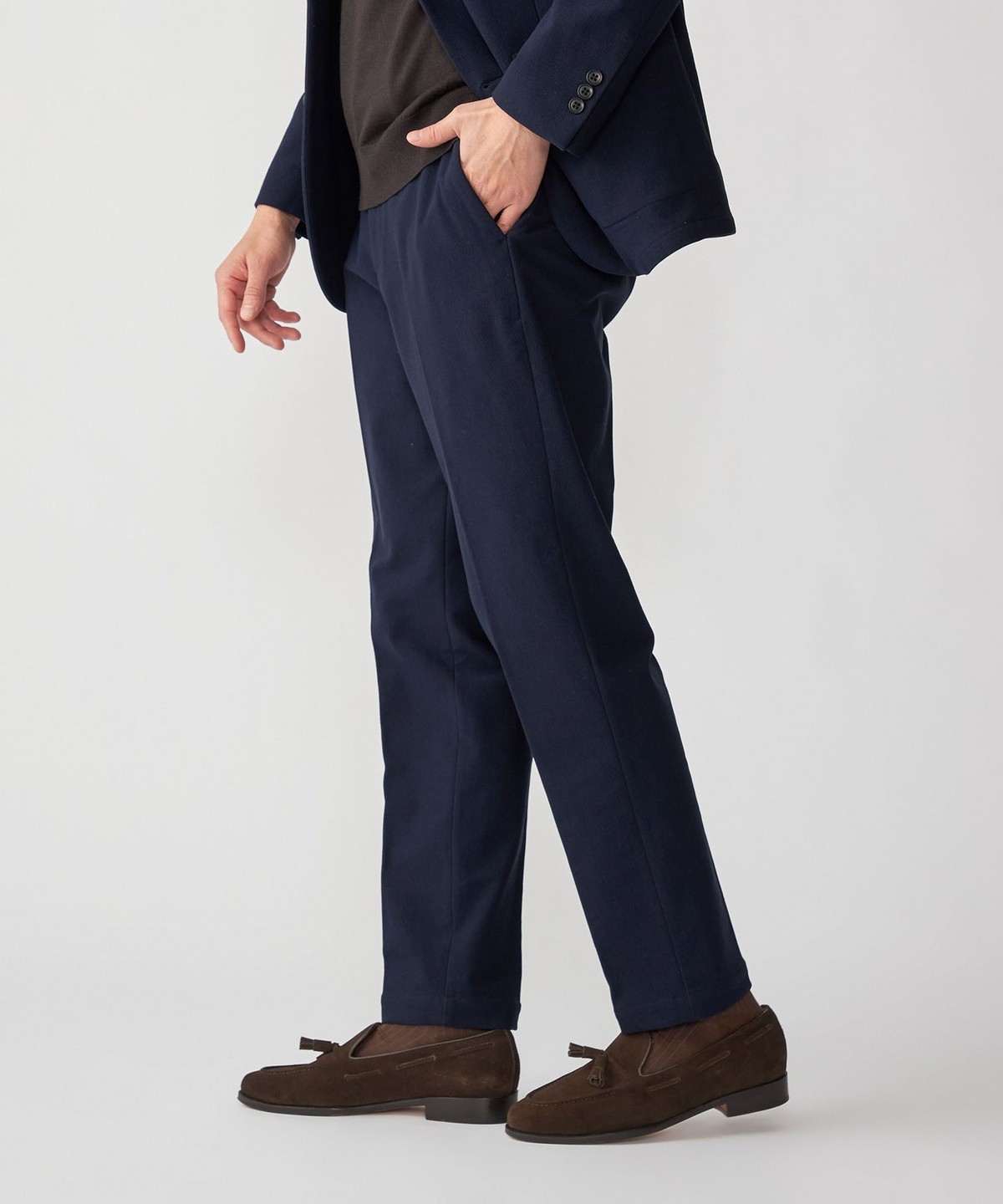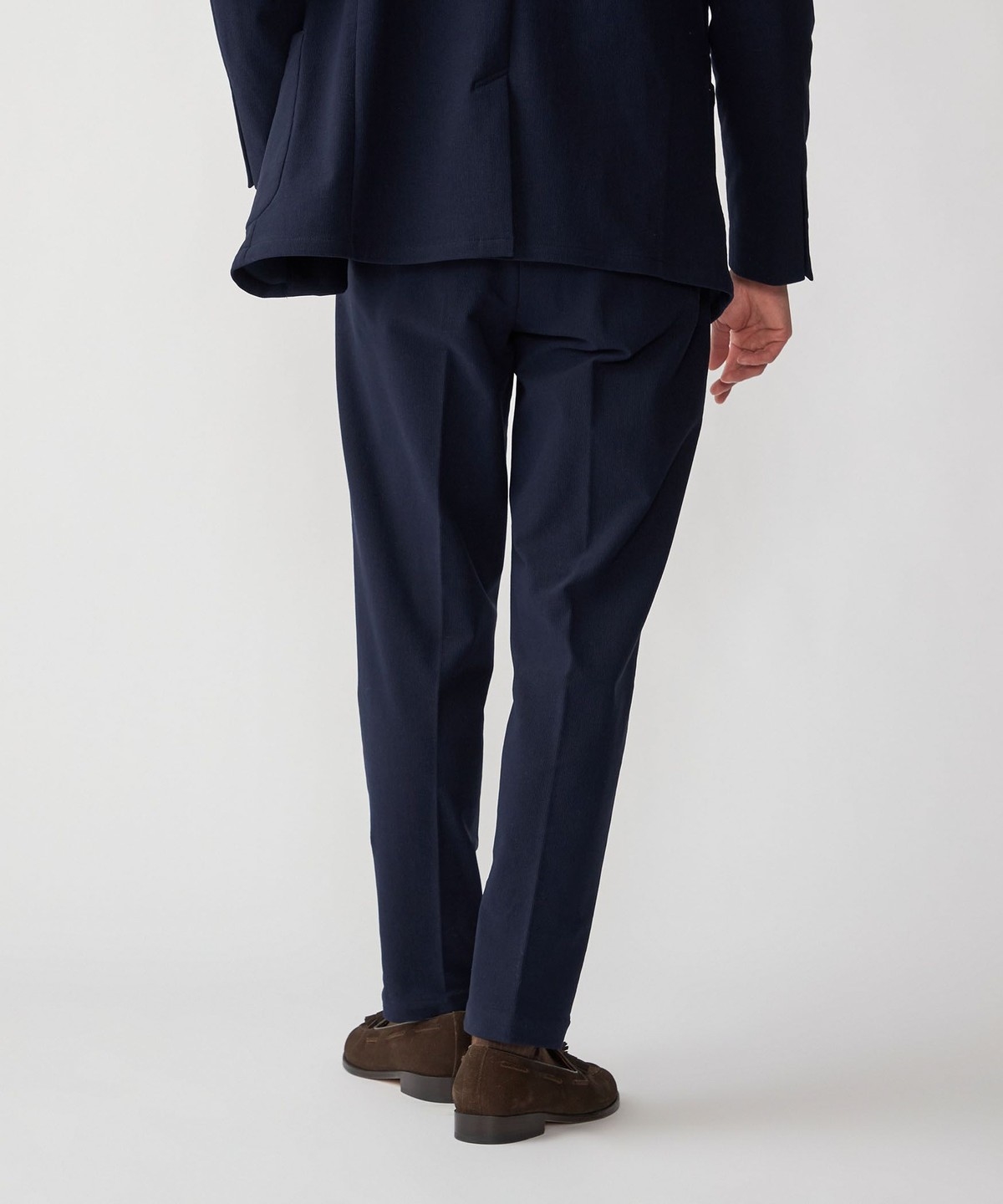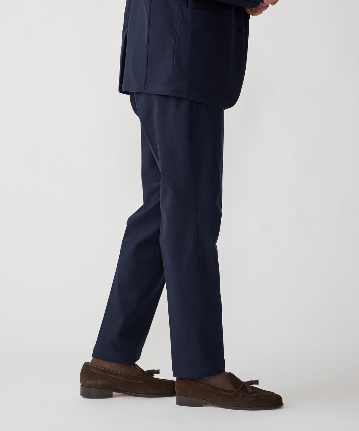 スタンダードなテーパードシルエットのイージースラックスなので、パンツ単品でもご使用いただきやすい一着です。