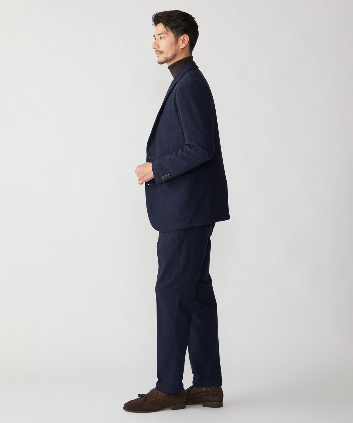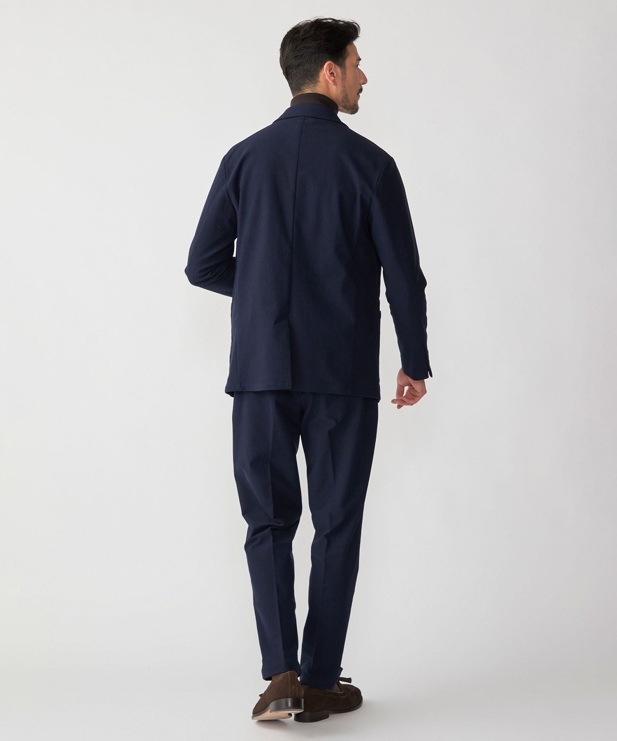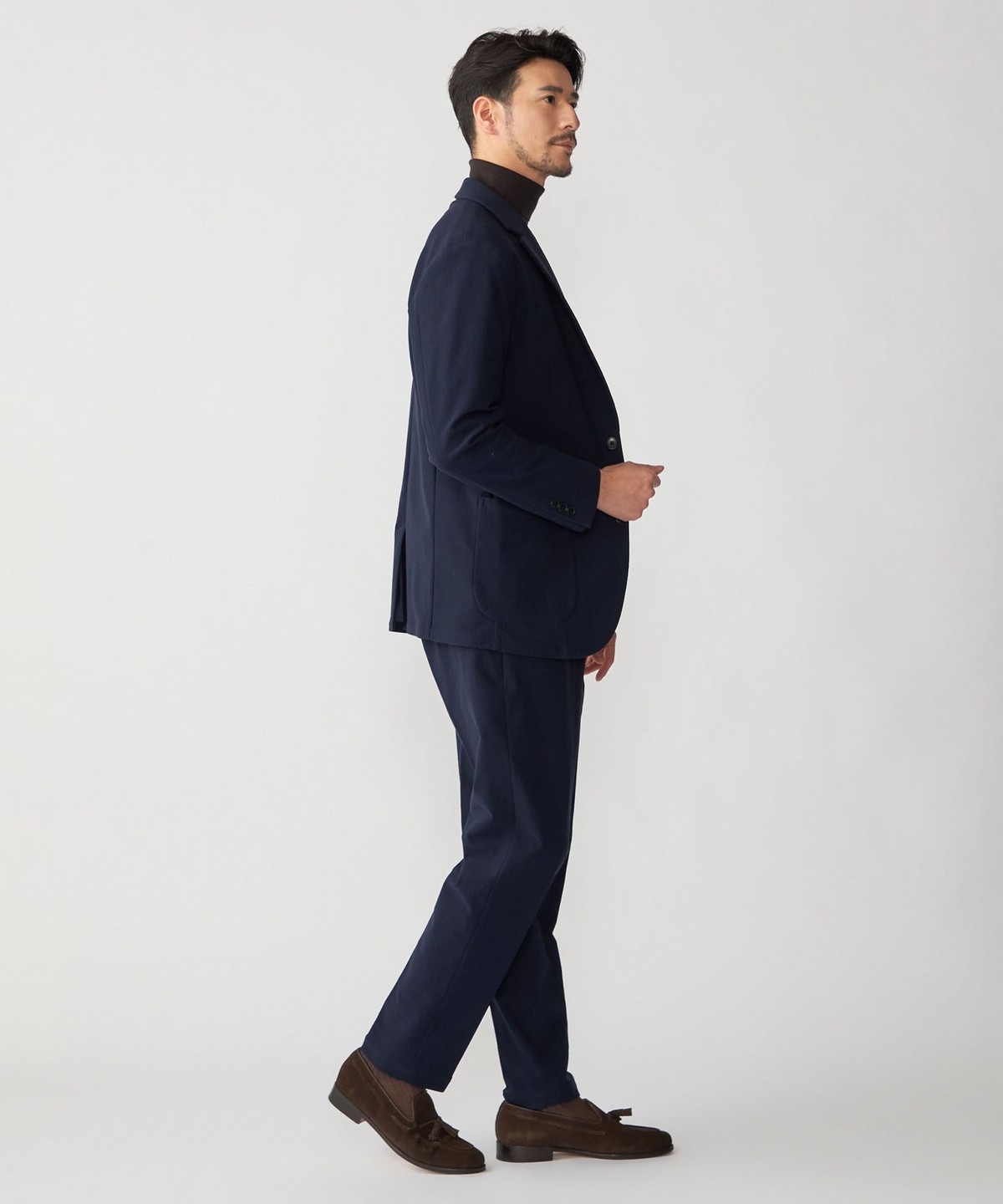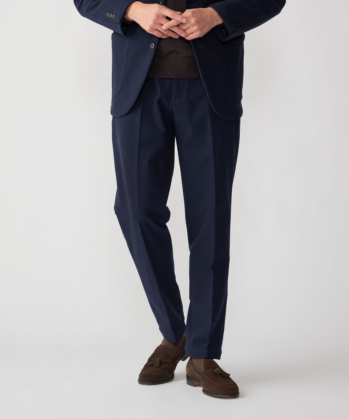 スタンダードなテーパードシルエットのイージースラックスなので、パンツ単品でもご使用いただきやすい一着です。