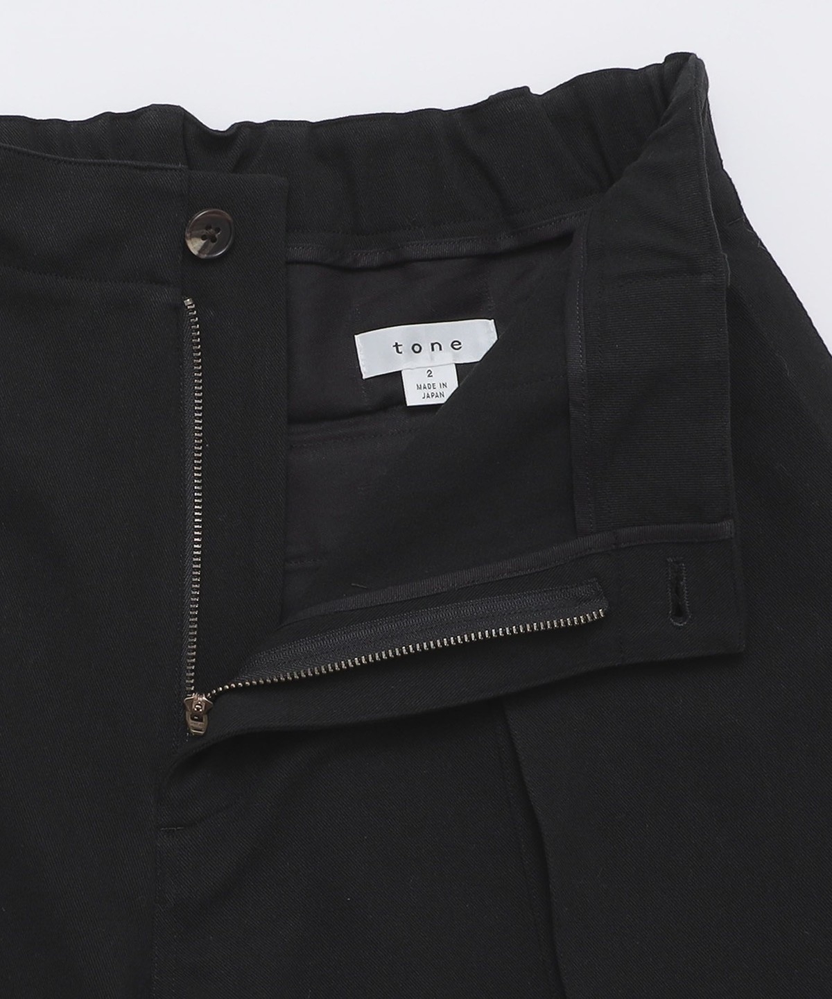 ウエストはゴムで、ベルトループが付いた仕様です。