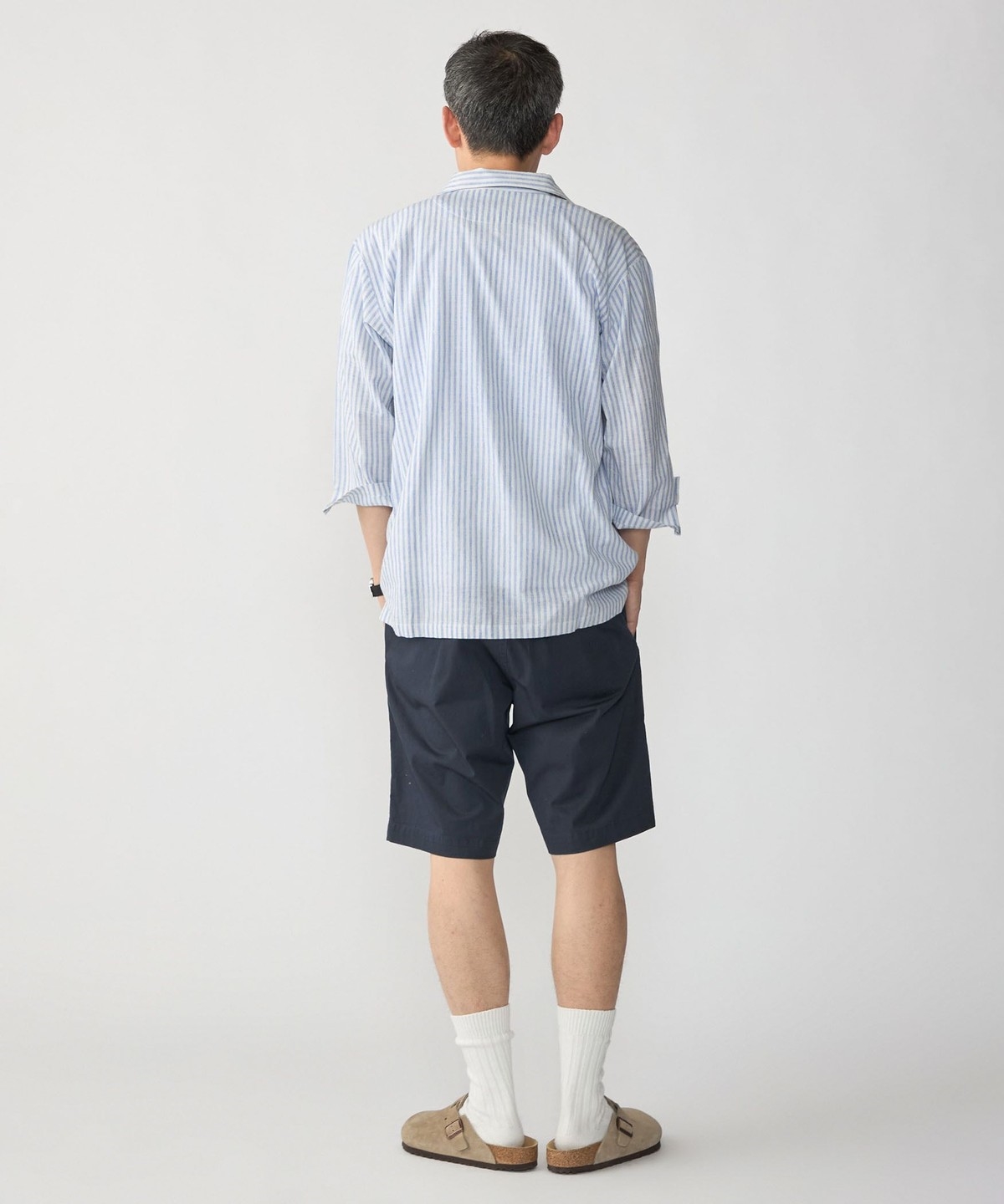 テーパードチノ(113-10-0328)をベースにヒップとワタリにリラックスしたゆとりを持たせたショートパンツ。
