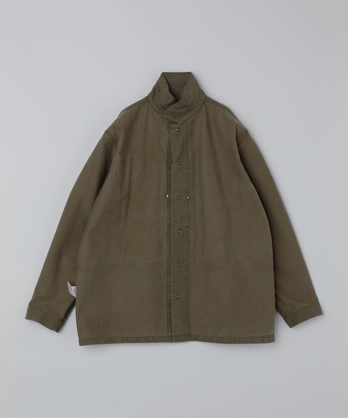 左胸のステンシル、"NEEDLES"の刻印が入ったボタンなど、特徴的なディテールを"NEEDLES"風にアレンジした一着。