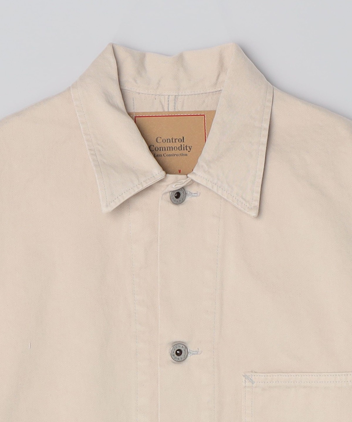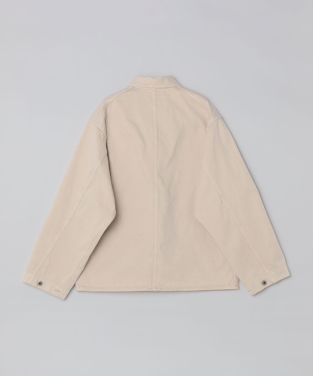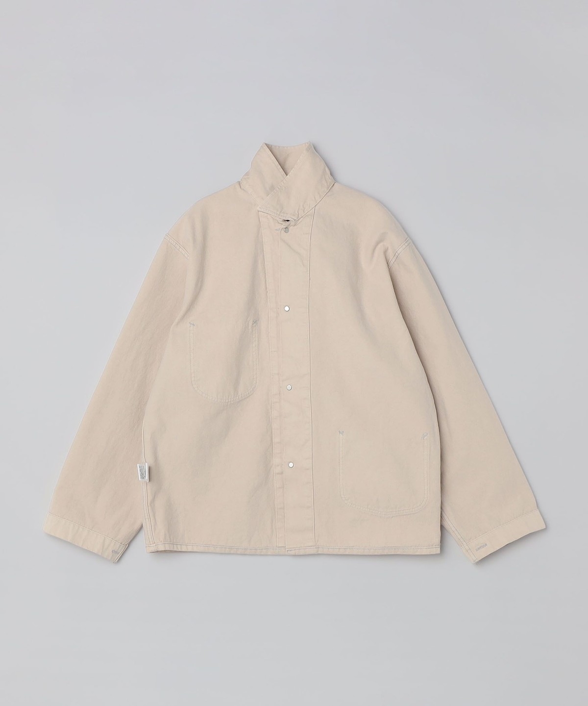 SKEWed(スキュー)のカバーオールジャケットパッチポケットを2つ配した、簡素化されたミニマルなディテールが特徴。