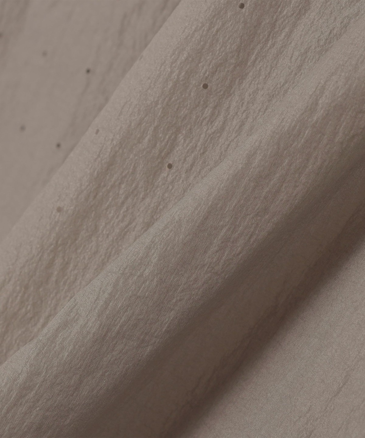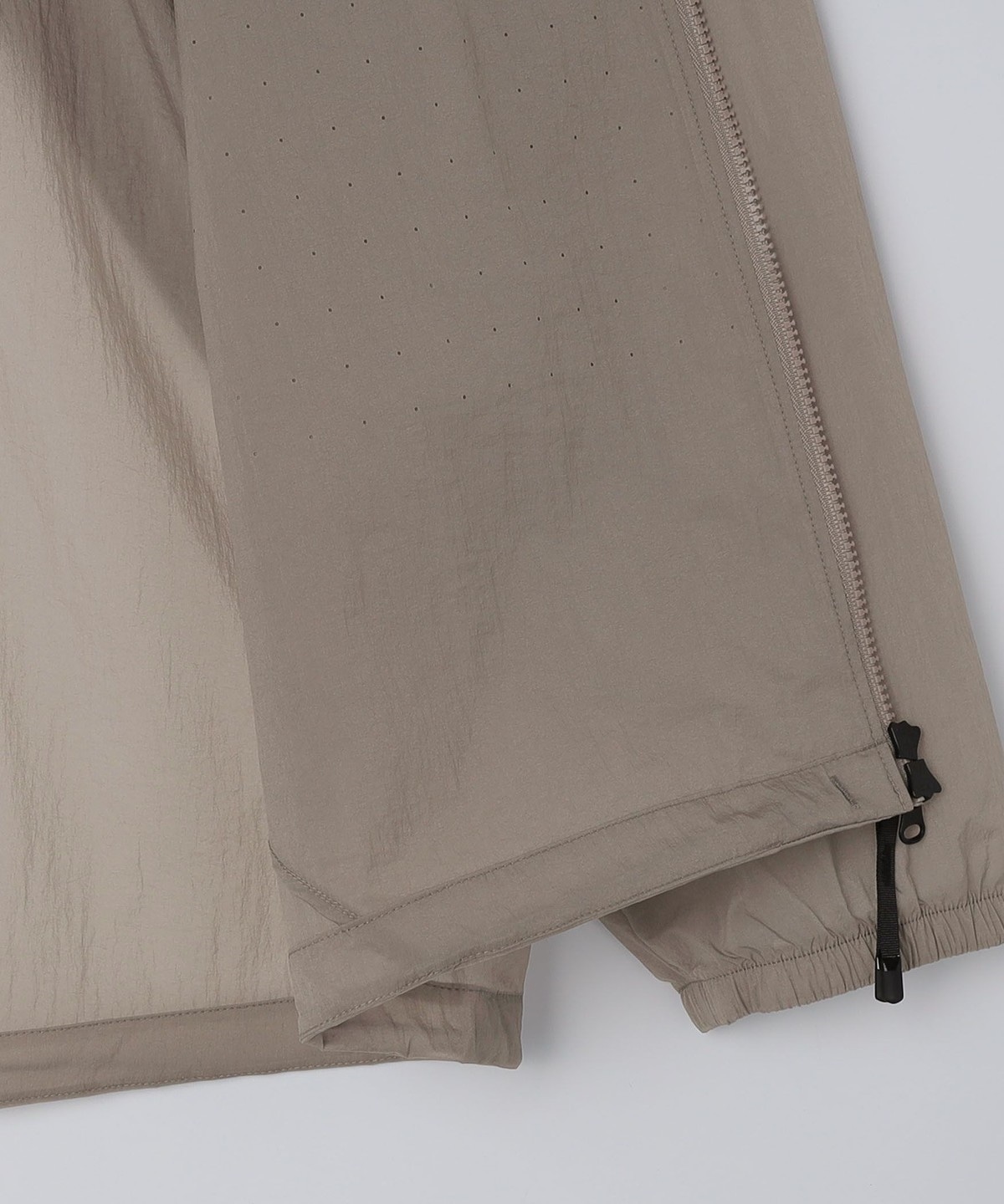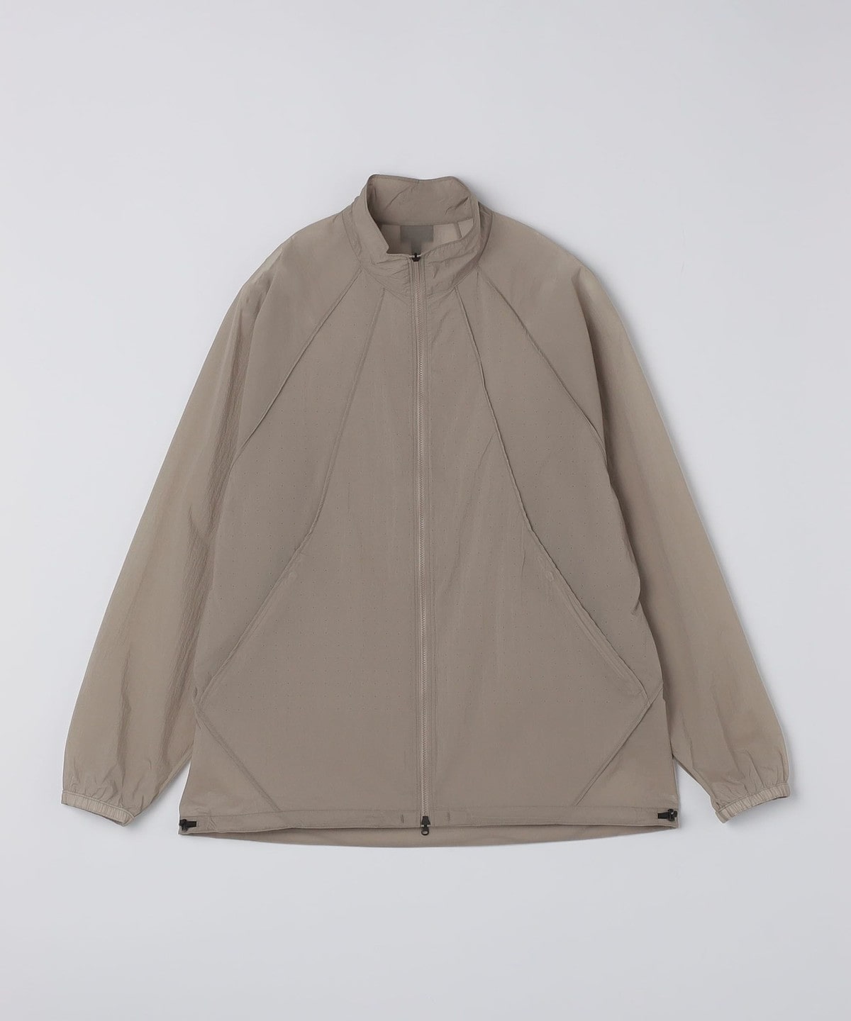ナイロンを平織りで薄く仕上げた、シアー感のあるウインドシェル生地を採用。