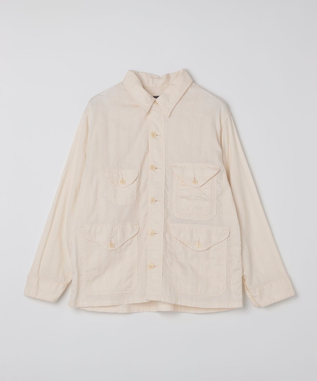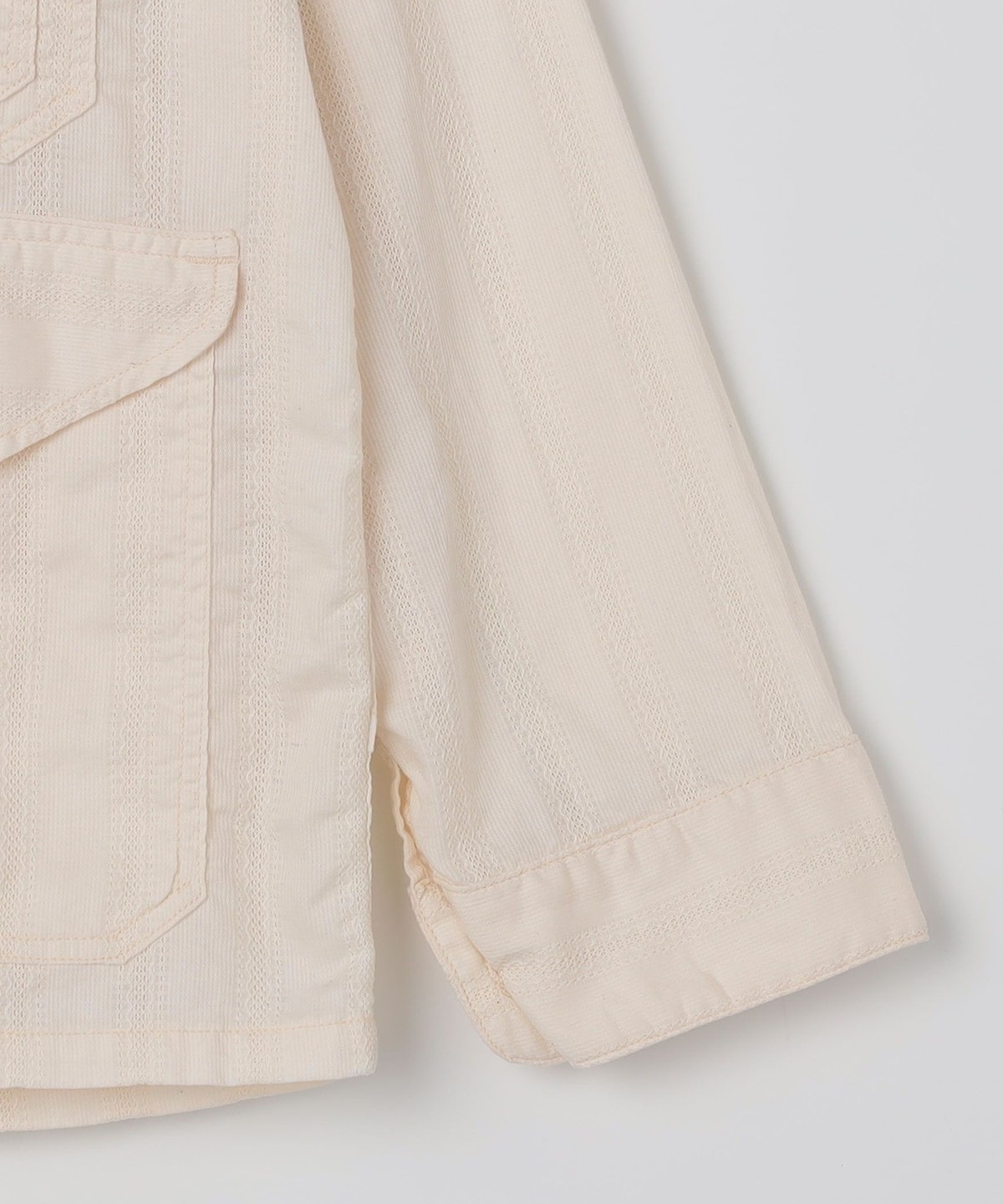 今回のクルーザー5-Rは、デザイナーが気に入っている1920年代のクルーザーをベースにしており、台衿一体化のチンストラップ付き衿や、低めにセットされたイレギュラーなポケットが今のムードに沿うリラックスしたオーラを放ちます。