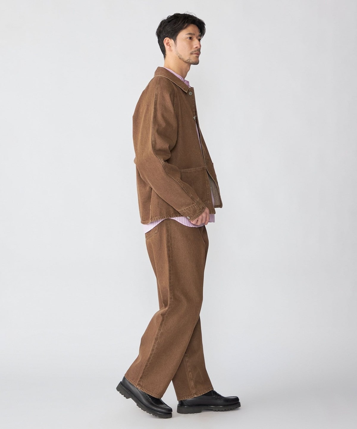 トレンド筆頭のカラーデニムはバイオストーンウォッシュ加工で絶妙な色落ち感を表現しました。