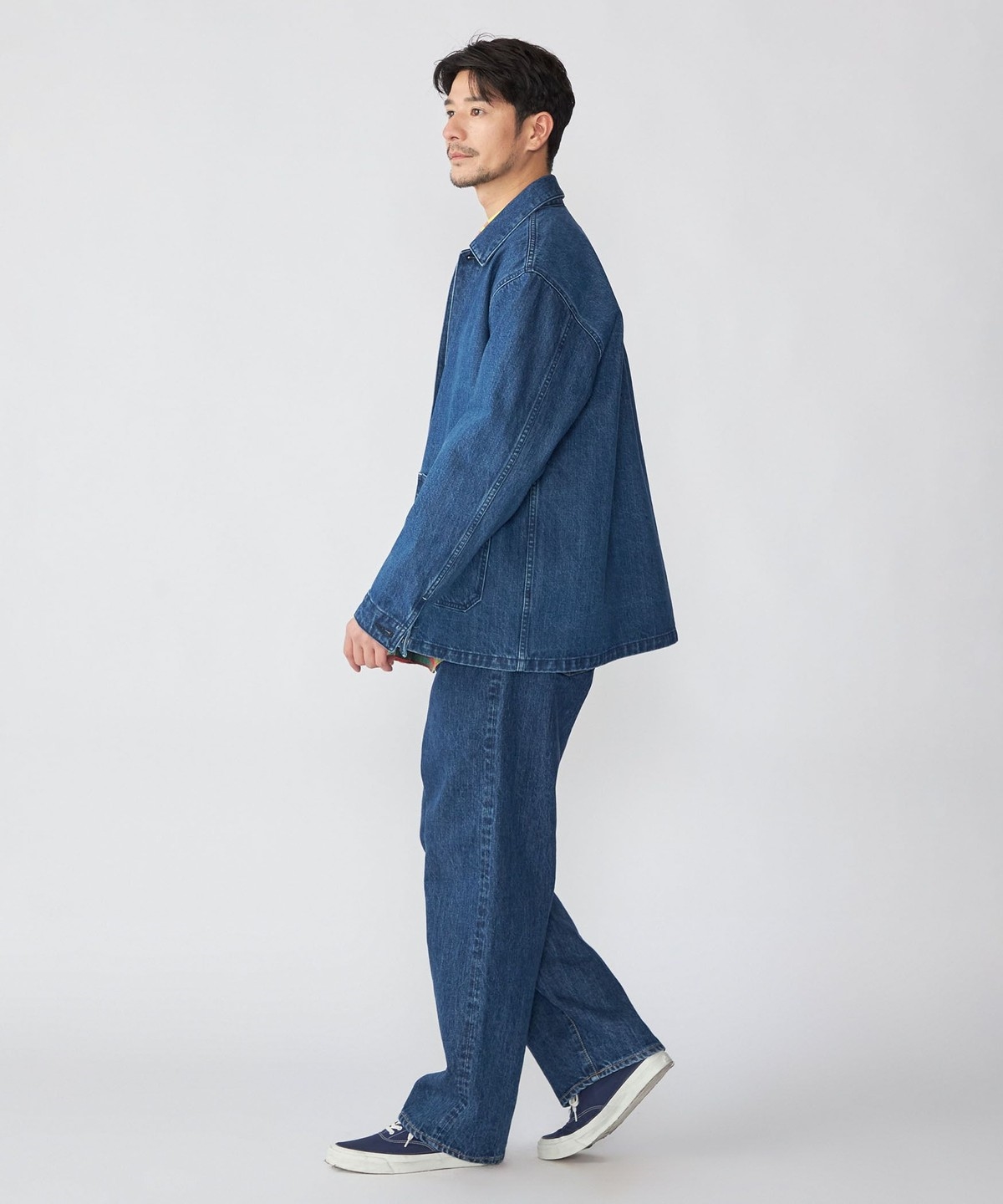 ゆったりとしたシルエットとやや短めに設定した着丈のバランスがポイントです。