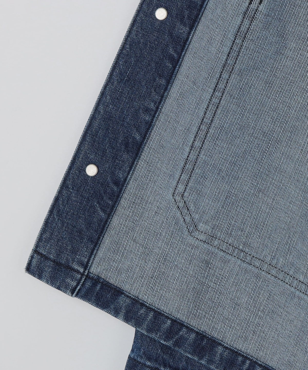 ステッチは同色でカンヌキのみワンポイントで配色にしており、カジュアル過ぎずキレイめにも着こなせるデニムカバーオールです。