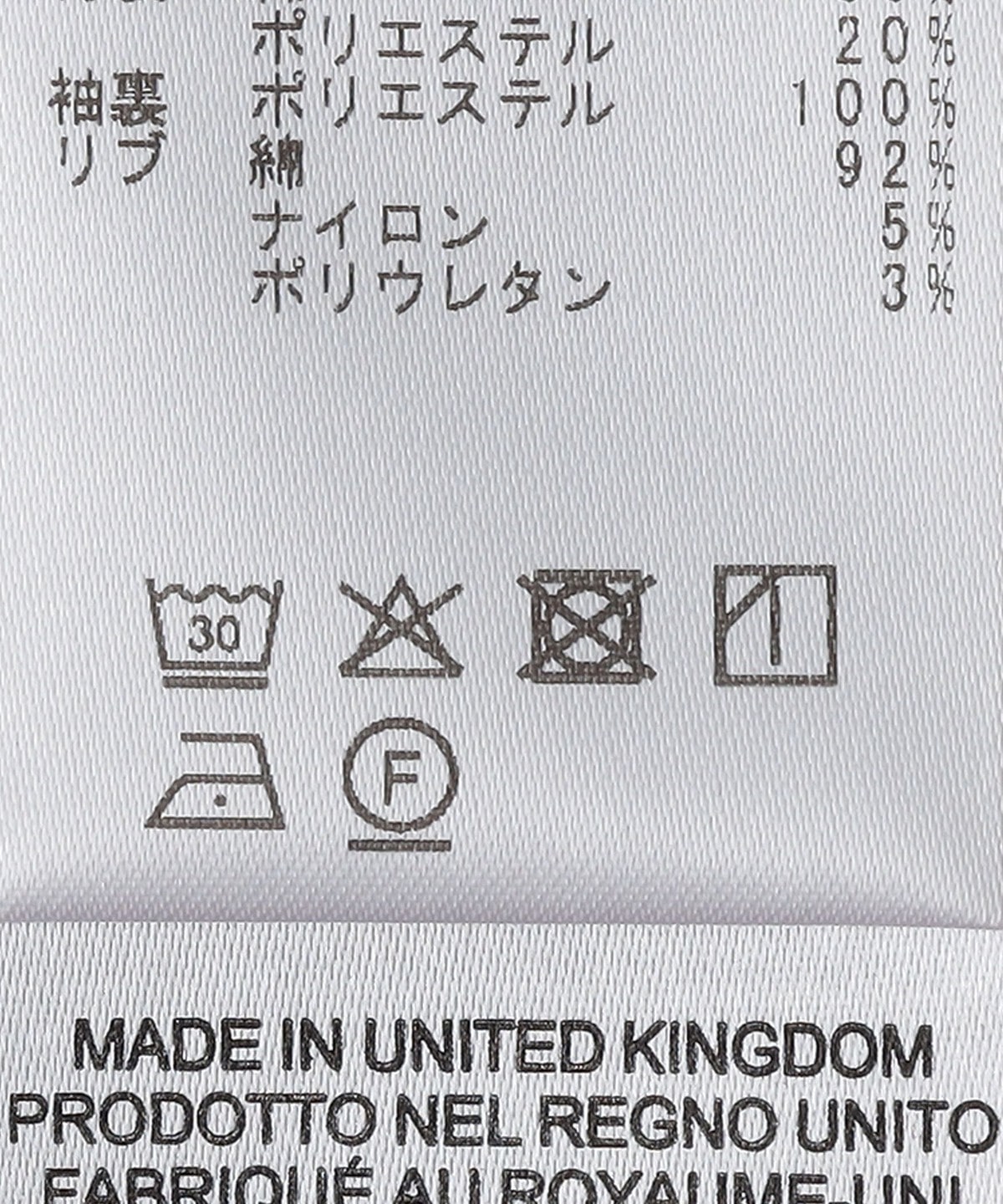 素材:表地: ポリエステル58%, 綿42%, 背裏: 綿80%, ポリエステル20%, 袖裏: ポリエステル100%, リブ: 綿92%, ナイロン5%, ポリウレタン3%