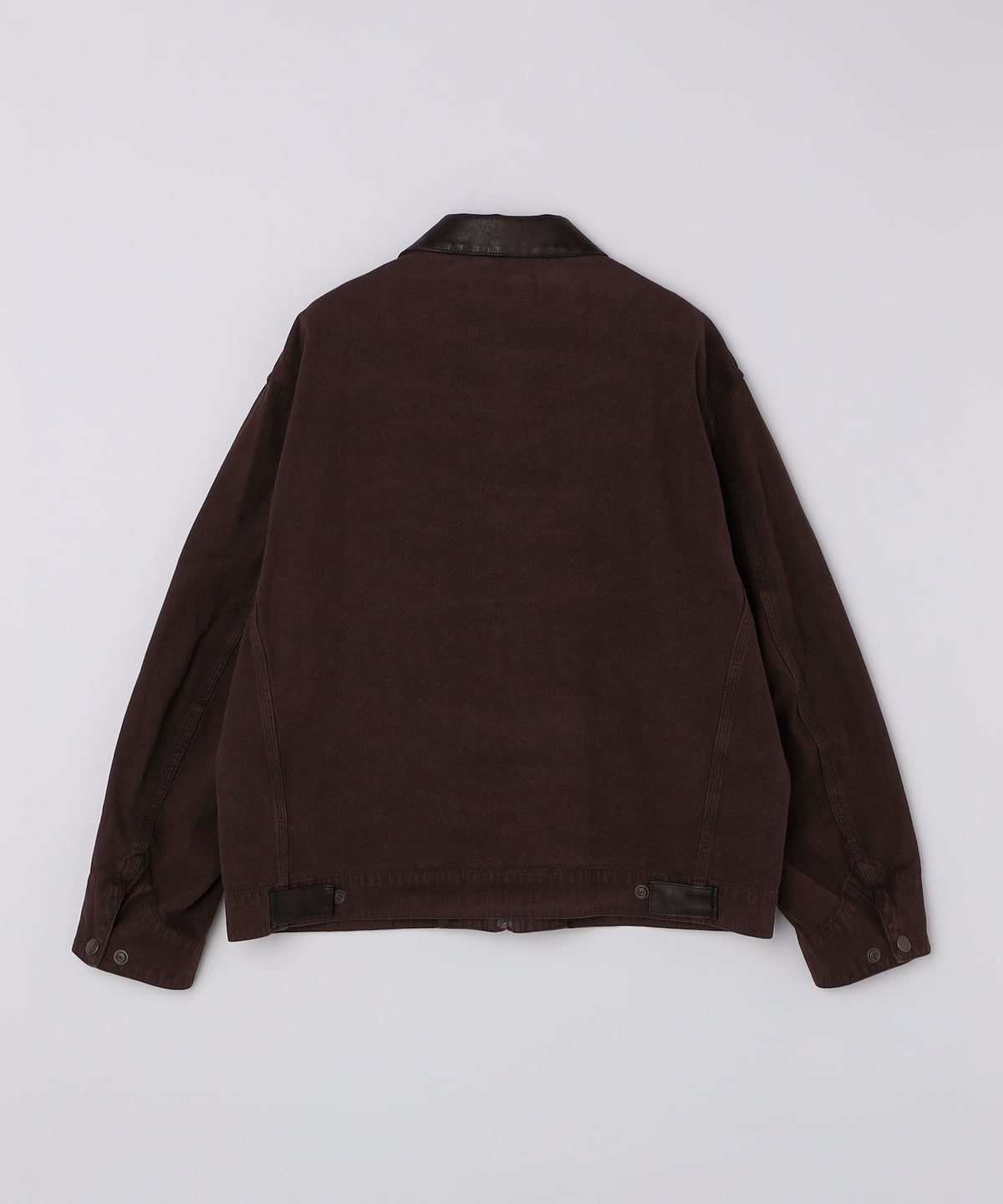 ダック生地ですが、襟をムラ感のある合成皮革で上品に仕上げているため、無骨になりすぎる事なく綺麗に着用できます。
