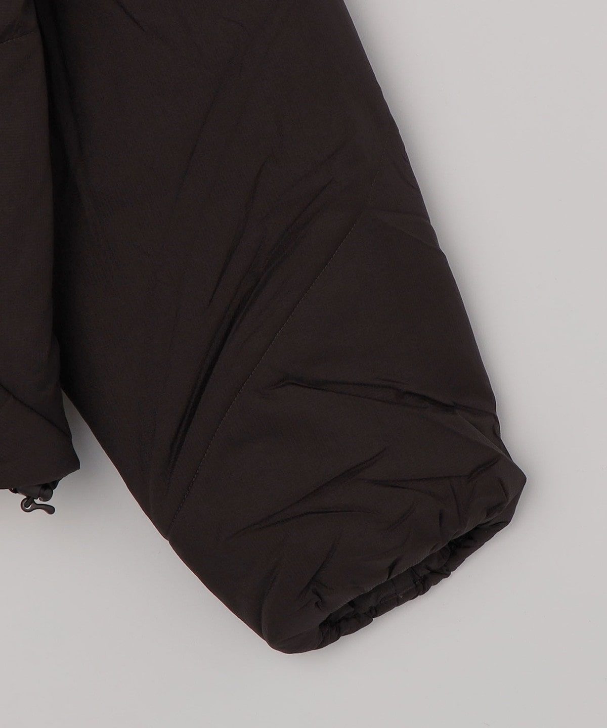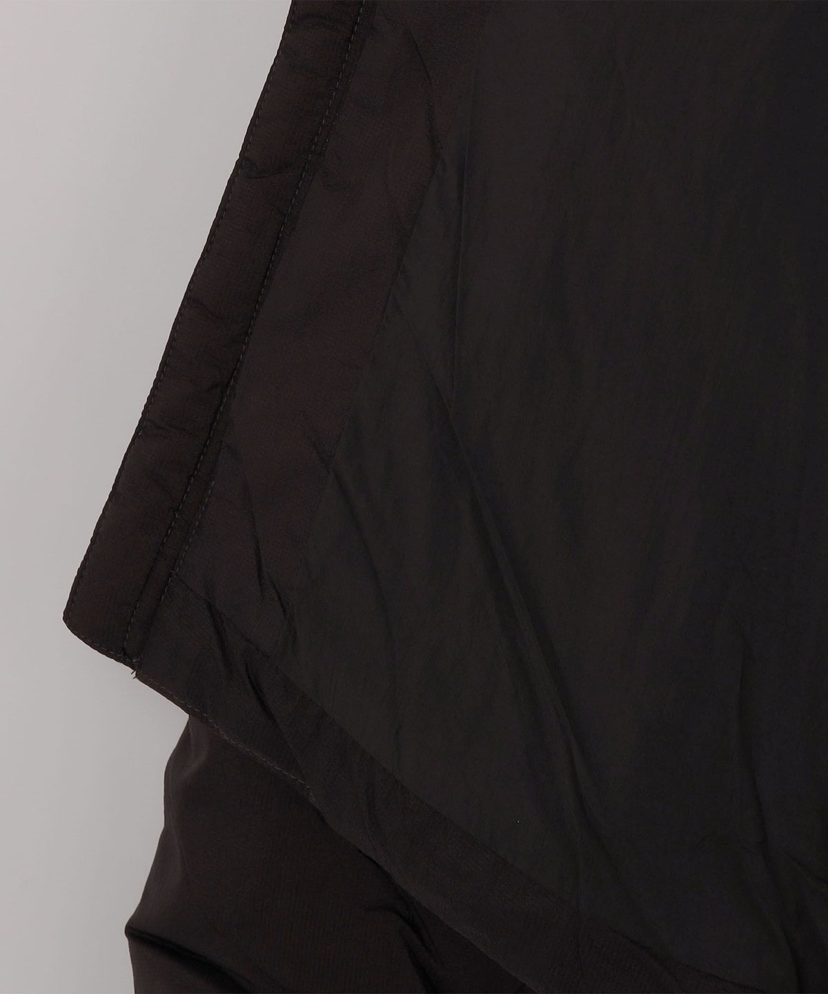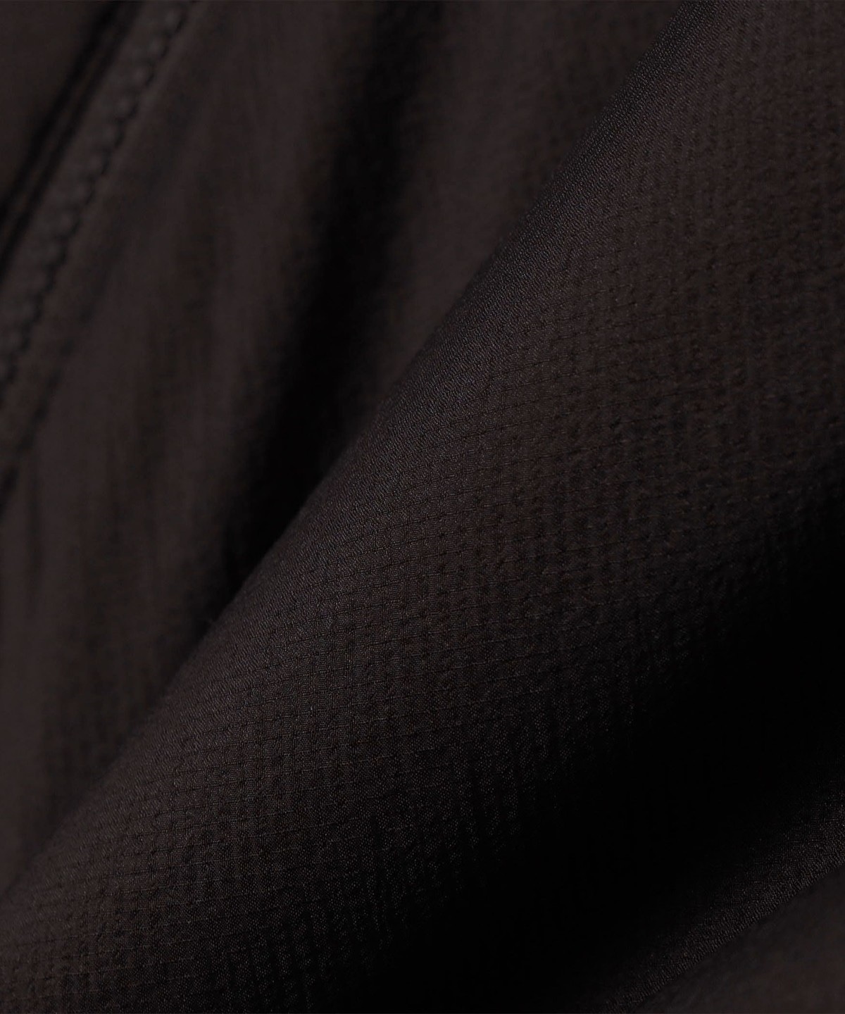軽量なクリンクル加工リップストップ表地と、通気性に優れた裏地の間に中わたを挟み込んだ構造で、主要ウィンタースポーツ用ミッドレイヤージャケットと同等の素材構成を実現しています。