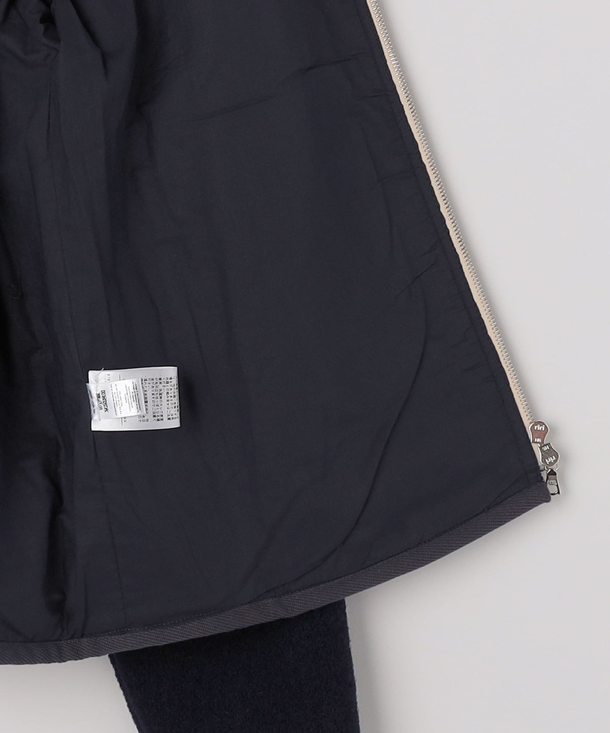 深みのあるネイビーカラーをベースに、別布のポケットやパイピングなど、各所にポイントがあしらわれています。