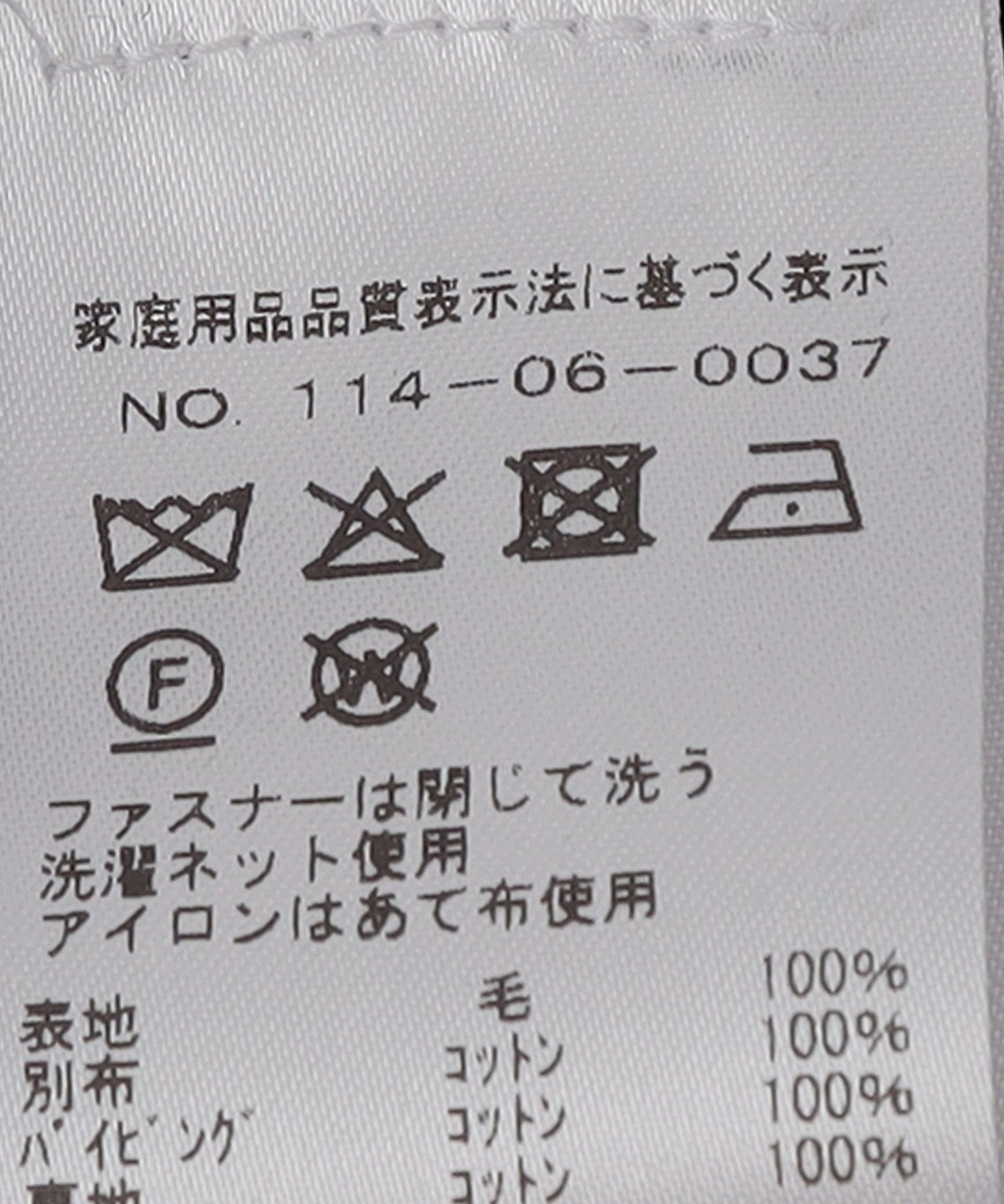 素材:表地: 毛100%, 別布: コットン100%, パイピング: コットン100%, 裏地: コットン100%