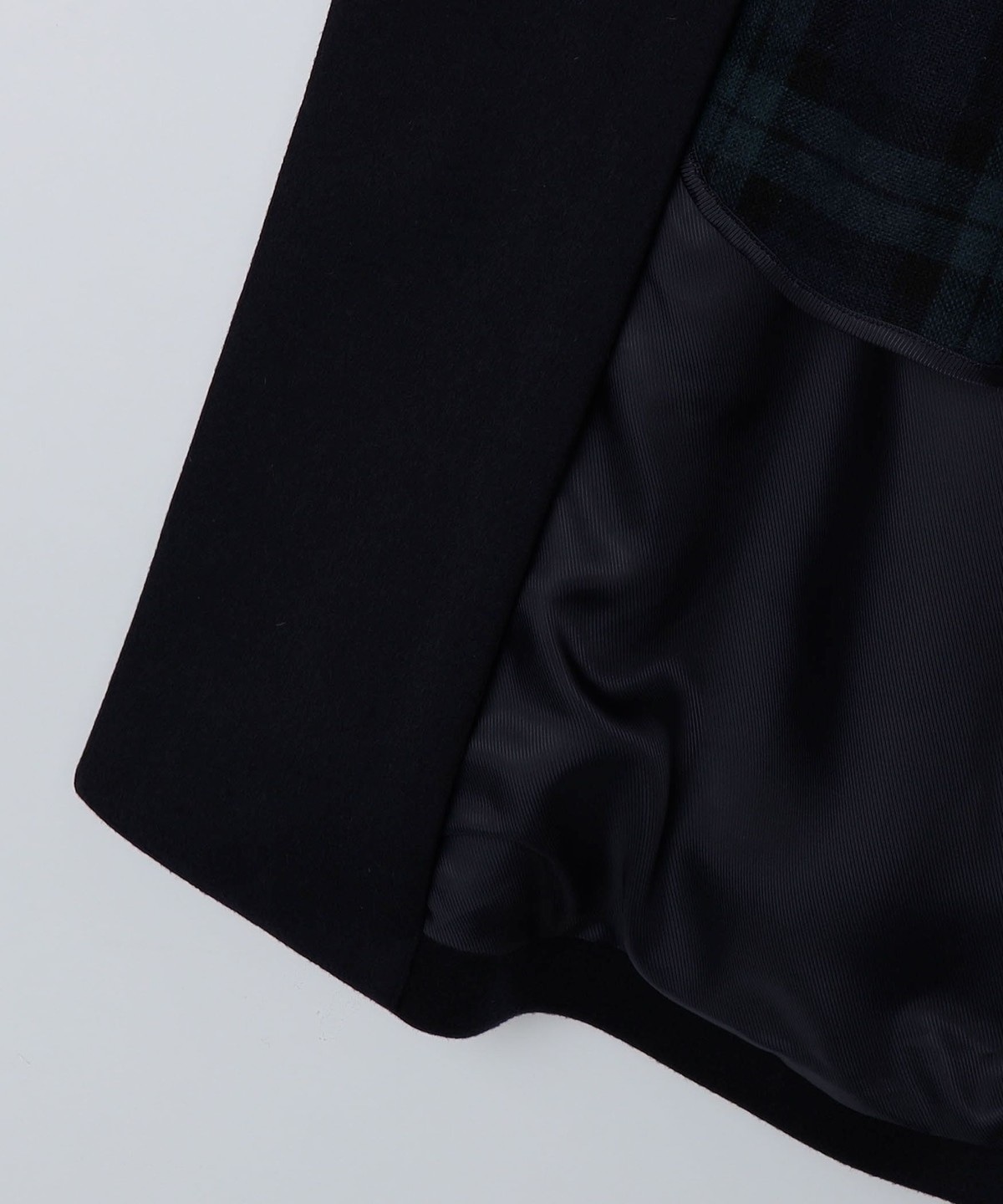 素材:本体 表地: 毛100%, (裏面: ポリウレタンラミネート加工) 裏地: キュプラ100%, ライナー 本体: 毛60%, ポリエステル25%, アクリル5%, ナイロン5%, レーヨン5%, 別布: キュプラ100%