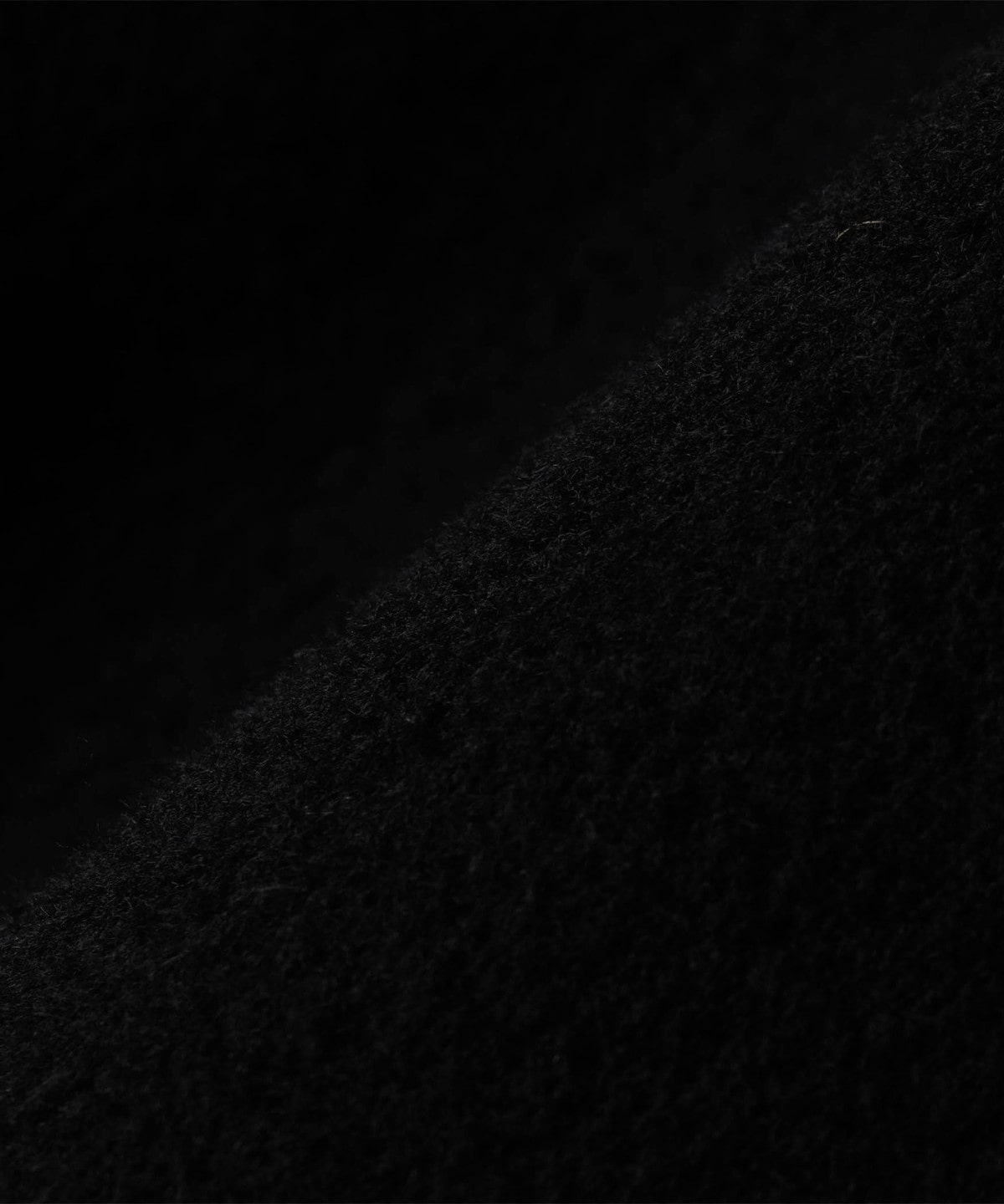 ウール混紡の密度感ある素材で高級感を演出し、余裕のある肩ラインとストレートフィットで構造的なシルエットを完成させました。