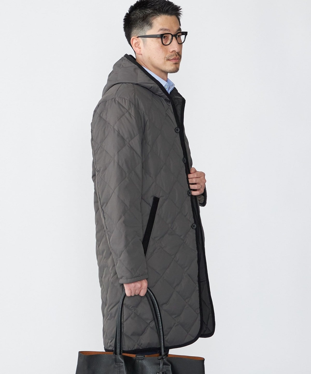 毎年好評のキルティングジャケットに加え、キルティングの縁をパイピングした英国調のフードコートをTAIONに依頼。もちろん中綿ではなく800フィルパワーのダウンを採用し、通常のキルティングコートより保温性も高く、かつ軽く仕上がっております。