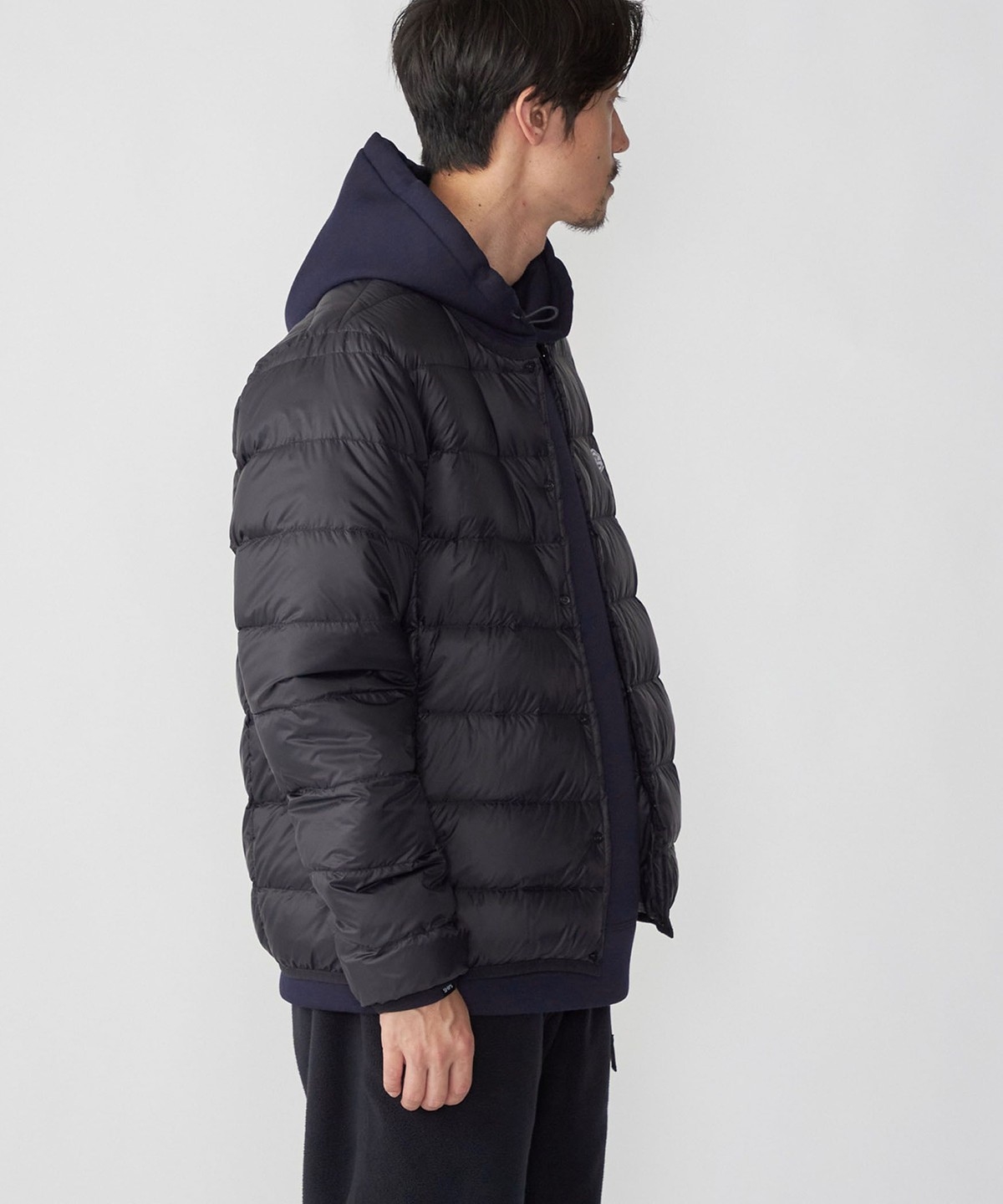 パーカーの上から着用してジャストサイズ。非常に軽いが保温性も十分で、アウターとしてもインナーダウンとしても使い勝手が良い。