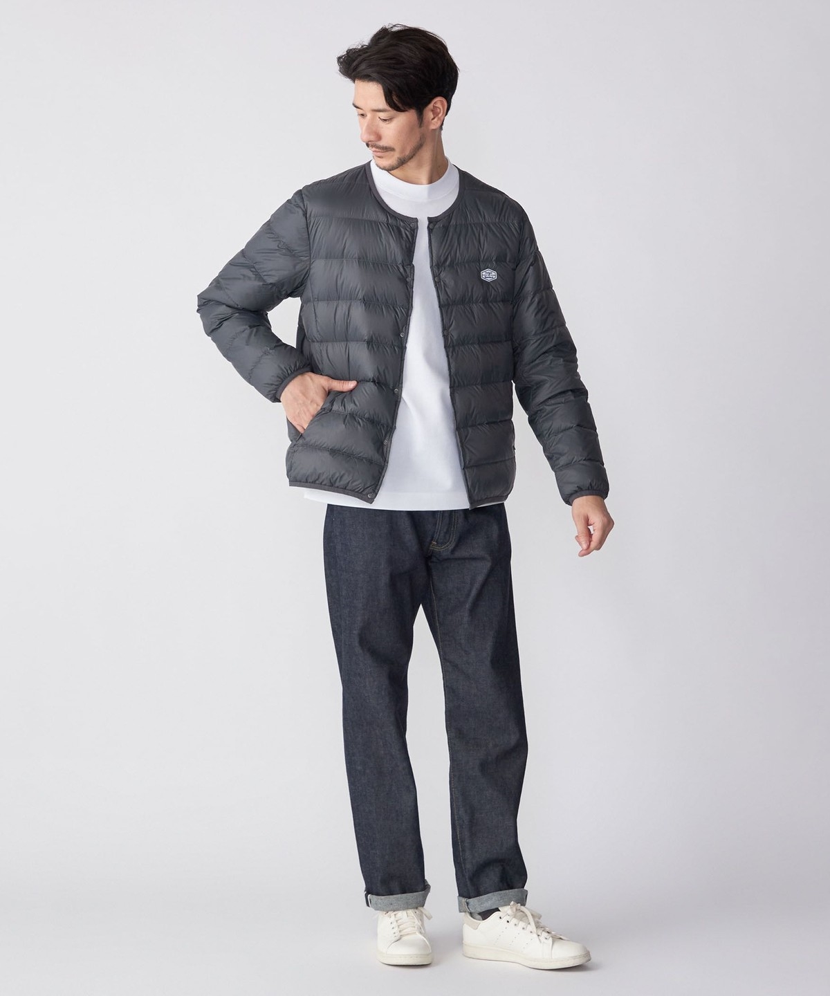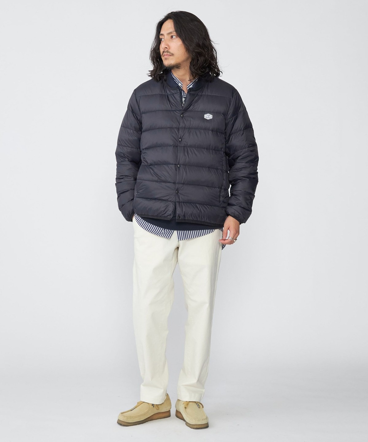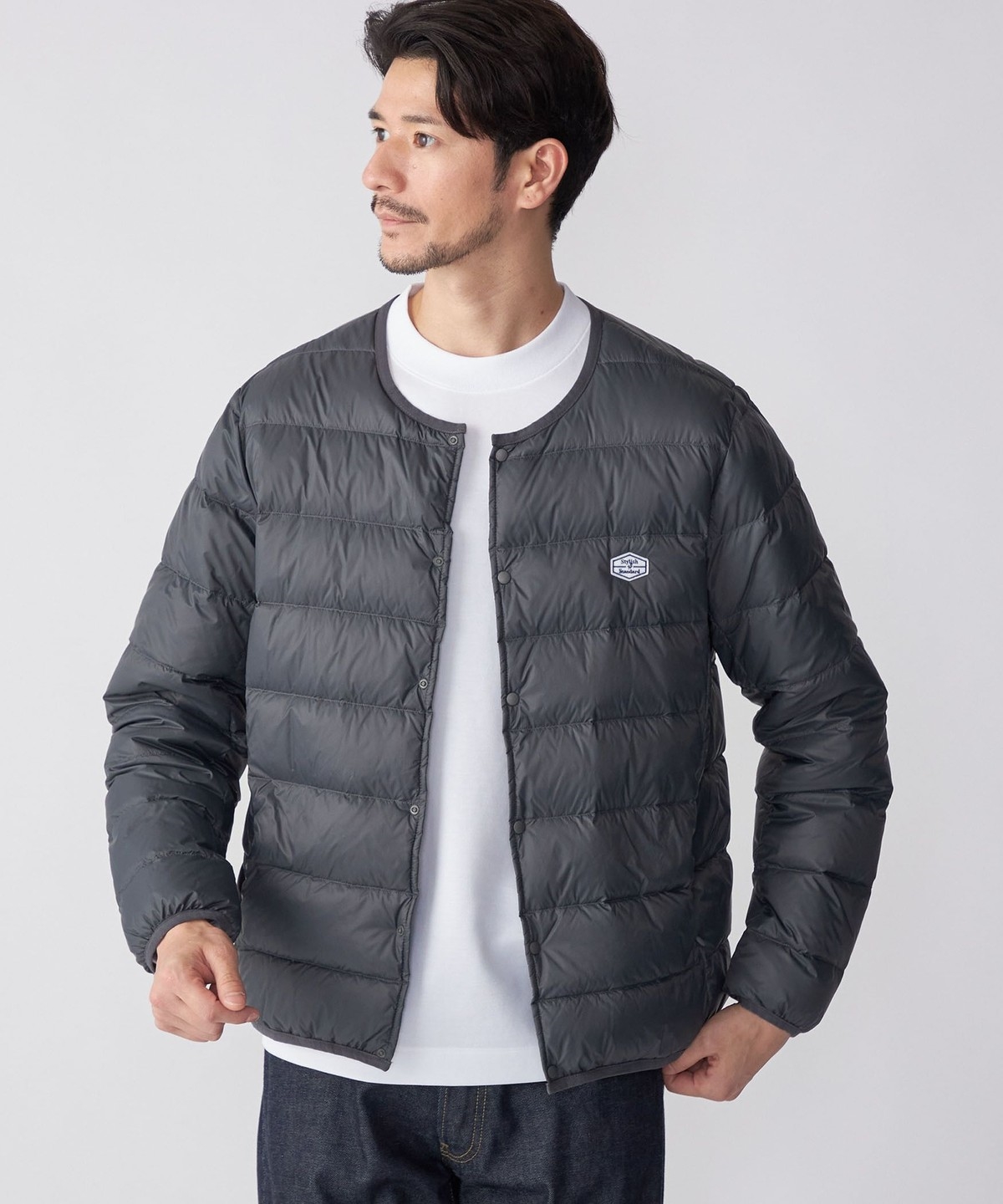 【WEB限定/SHIPS別注】TAION: ロゴワッペン ナイロン クルーネック インナーダウン カーディガン