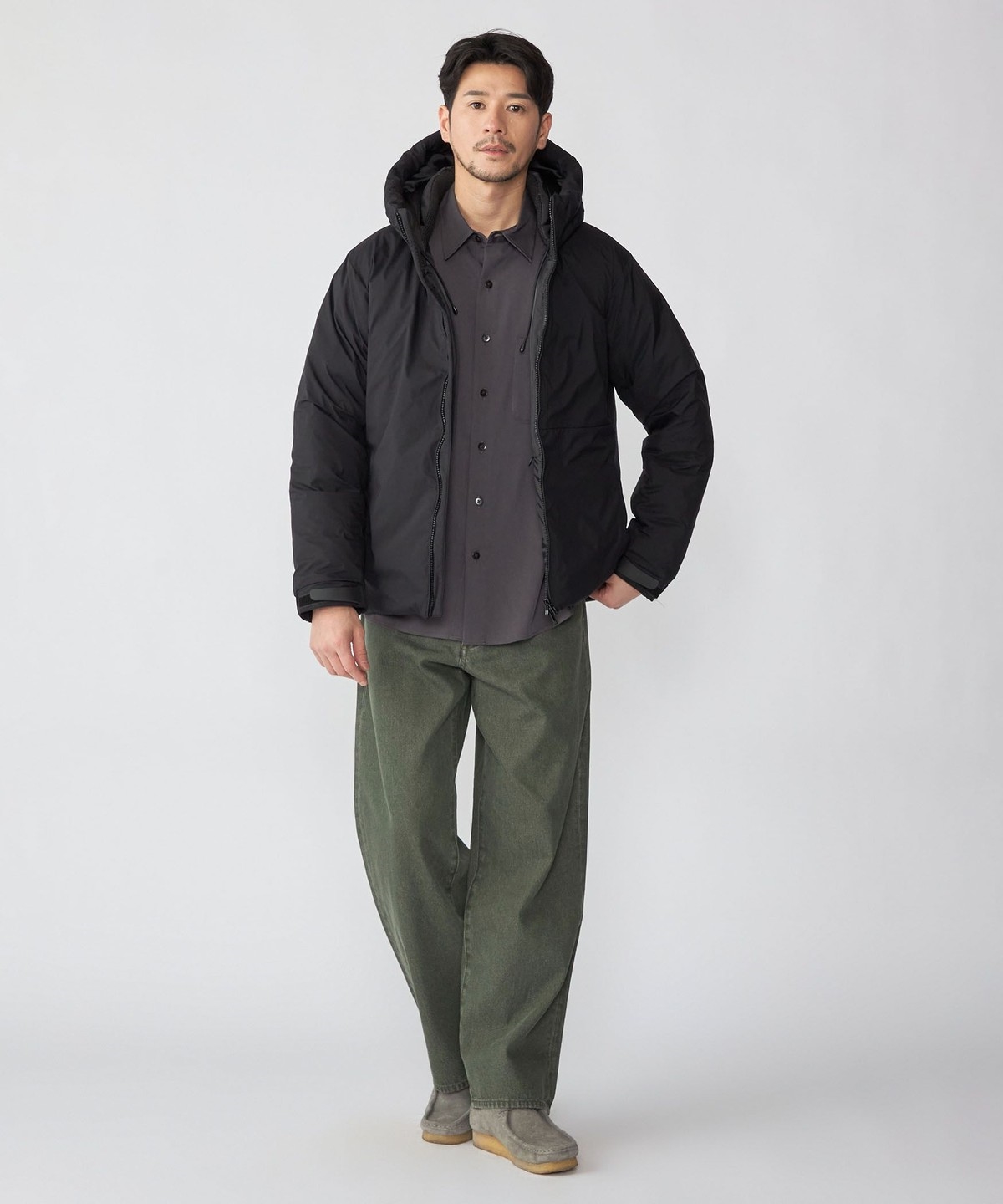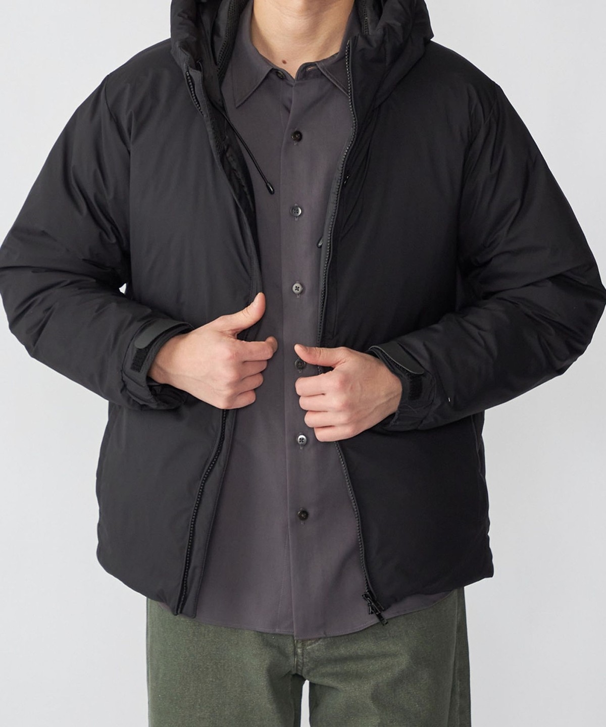 フードの収まりに拘ったミニマルなフードブルゾン