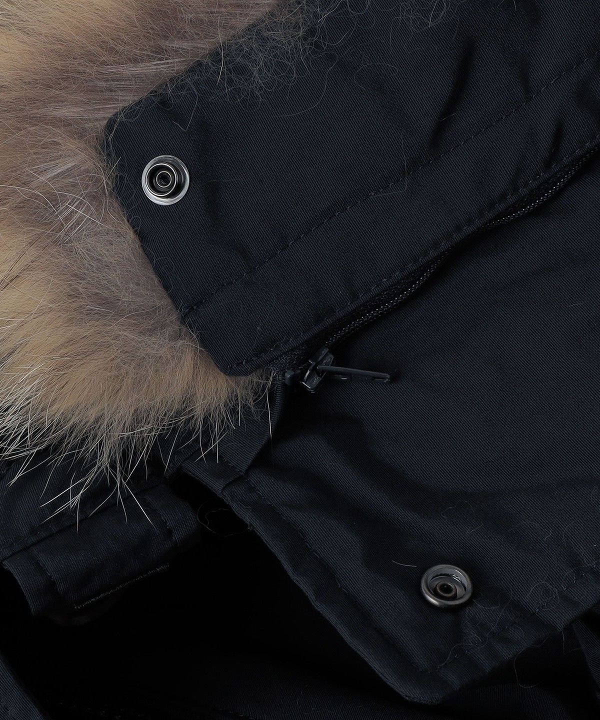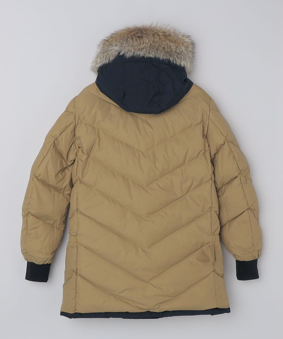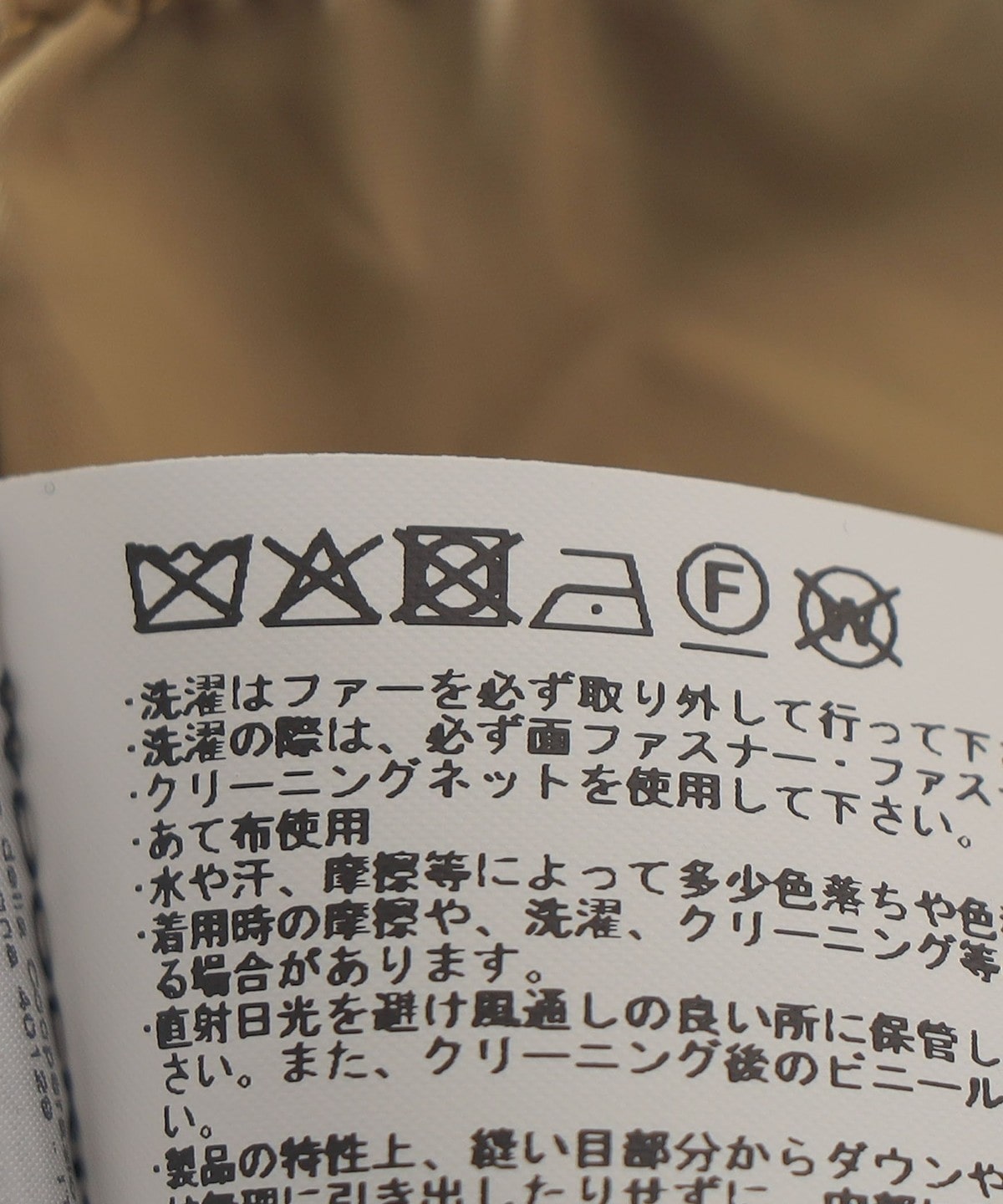 素材:表地: 綿60%, ナイロン40%, 裏地: ナイロン100%, 中わた: ダウン80%, フェザー20%, リブ部分: ポリエステル98%, ポリウレタン2%, 毛皮部分: コヨーテ