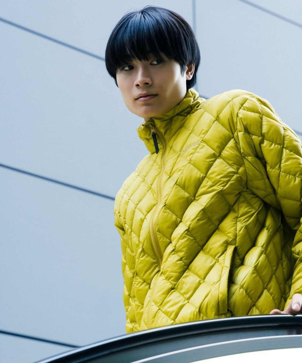 シルエットはアウトドアブランドのダウンとは異なる都会的な身幅広め、着丈短めのシルエットで別注しました。