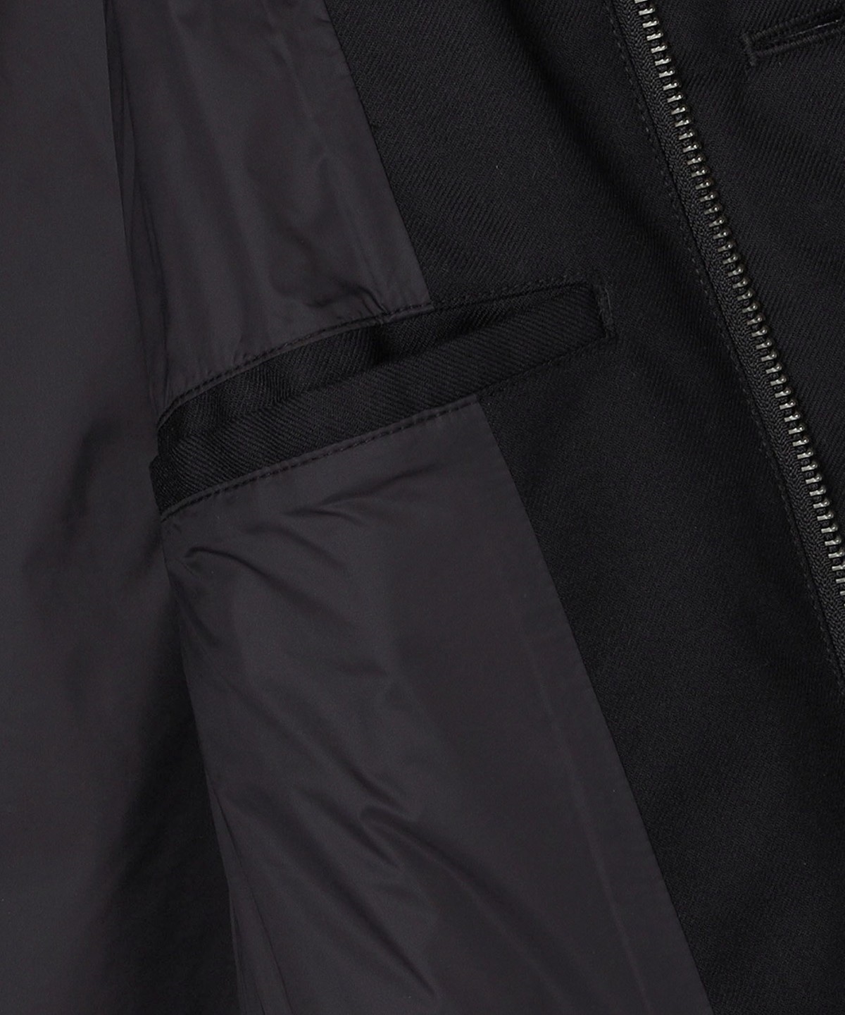 素材:表地: 毛70%, ポリエステル30%, (裏地表側: フィルムラミネート), 裏地: ナイロン100%, 詰め物: ダウン90%, フェザー10%