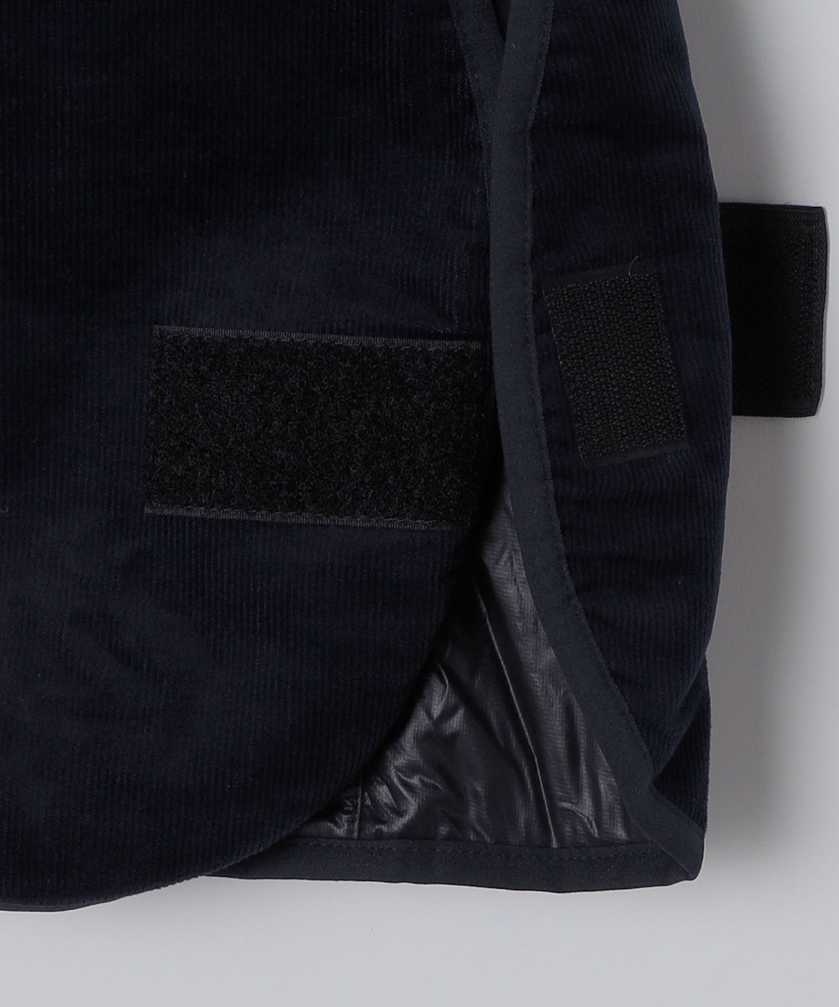 スポーティーな脇の切替により若干のサイズ調整や取り外しも可能。