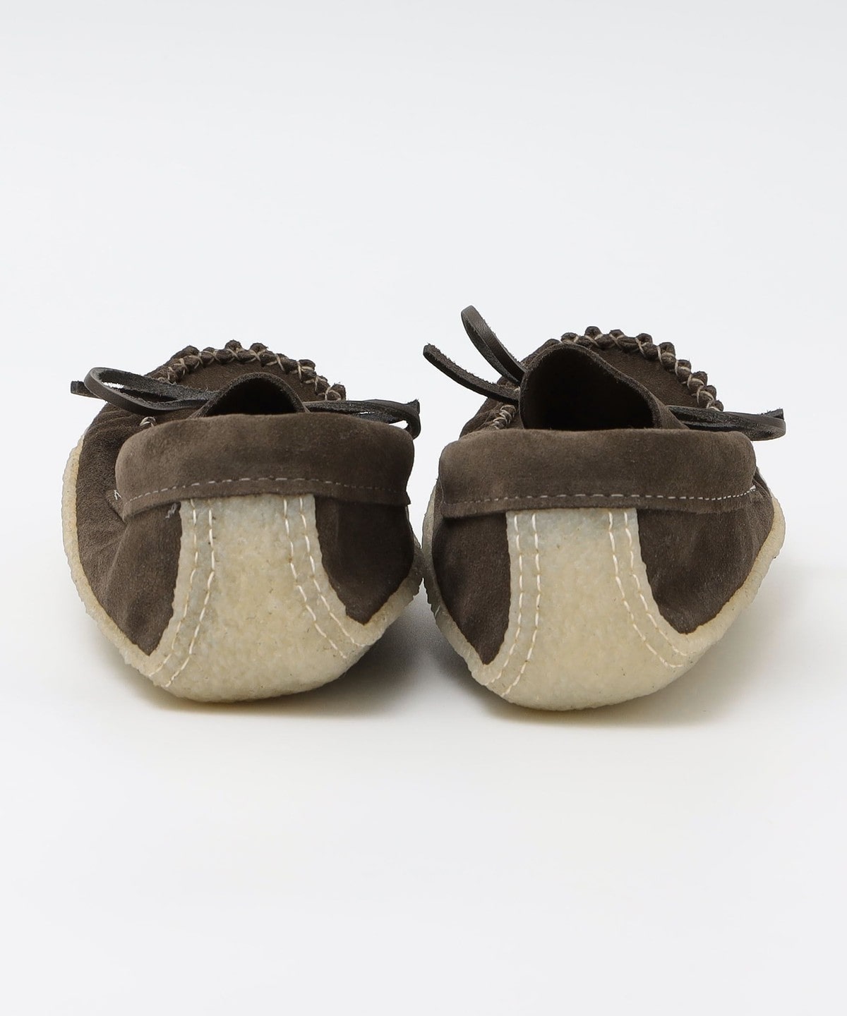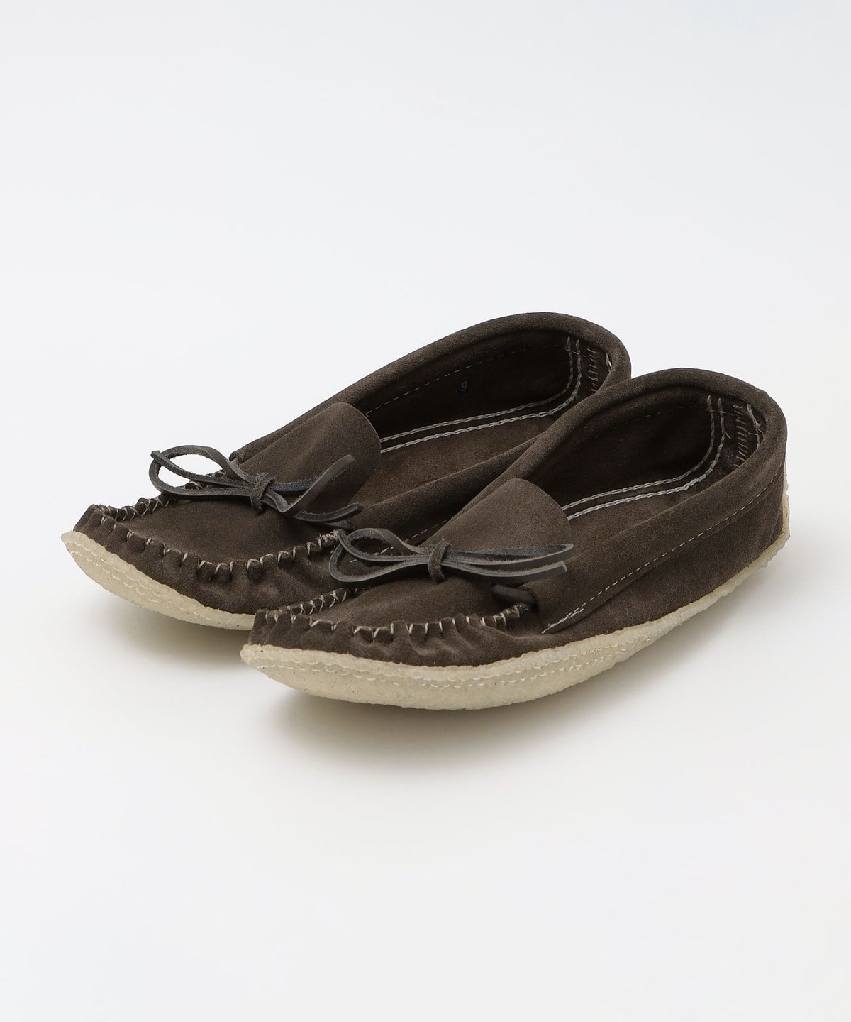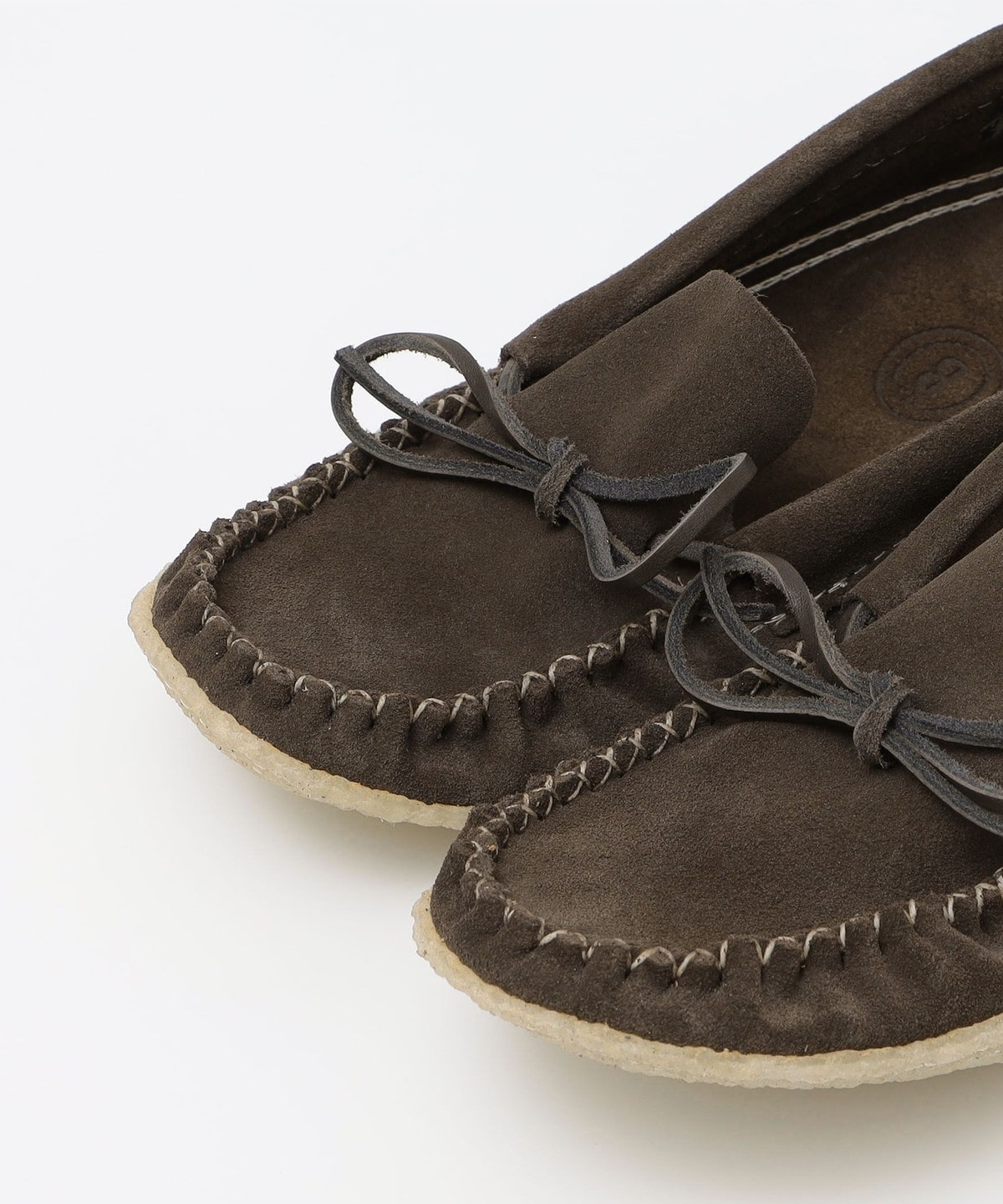 足を包み込むようなモカシンは、U字の形をしたアッパーを縫合する「モカ縫い」という手法で、現在も職人の手縫いにより作られます。