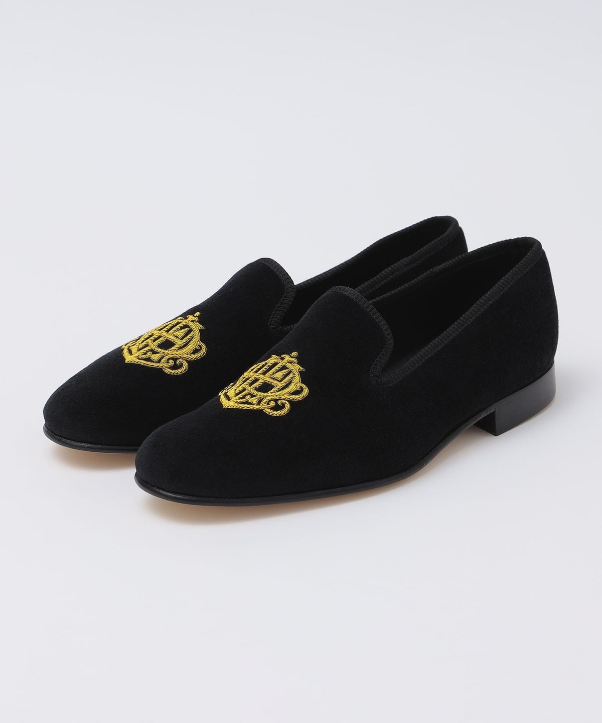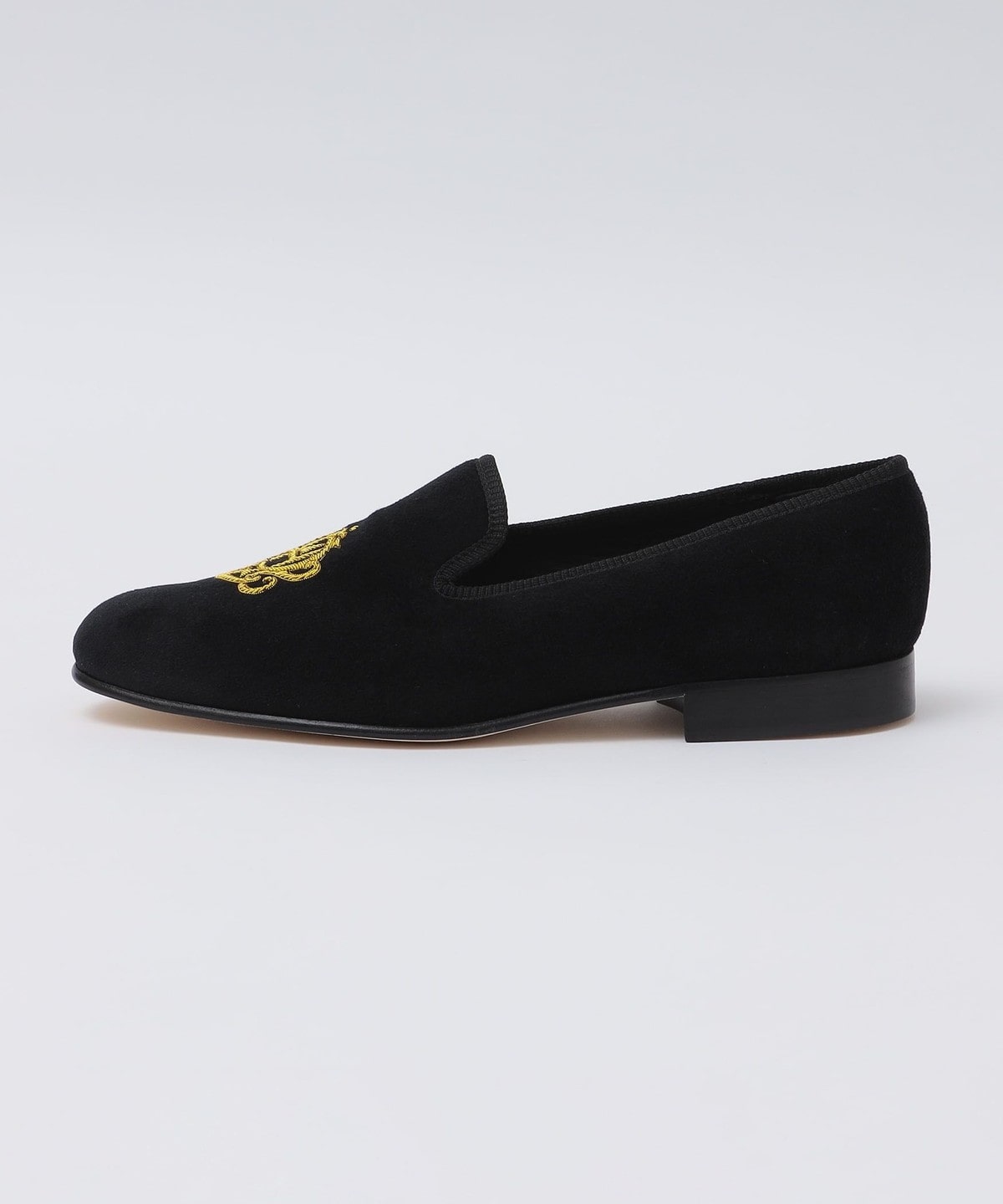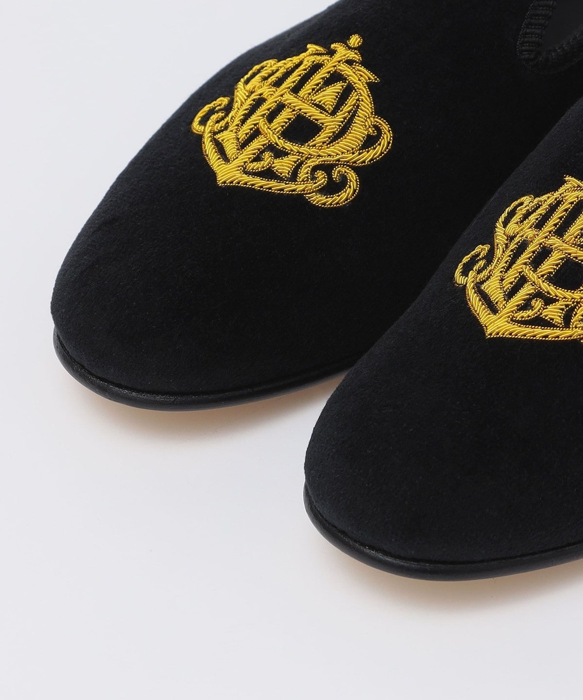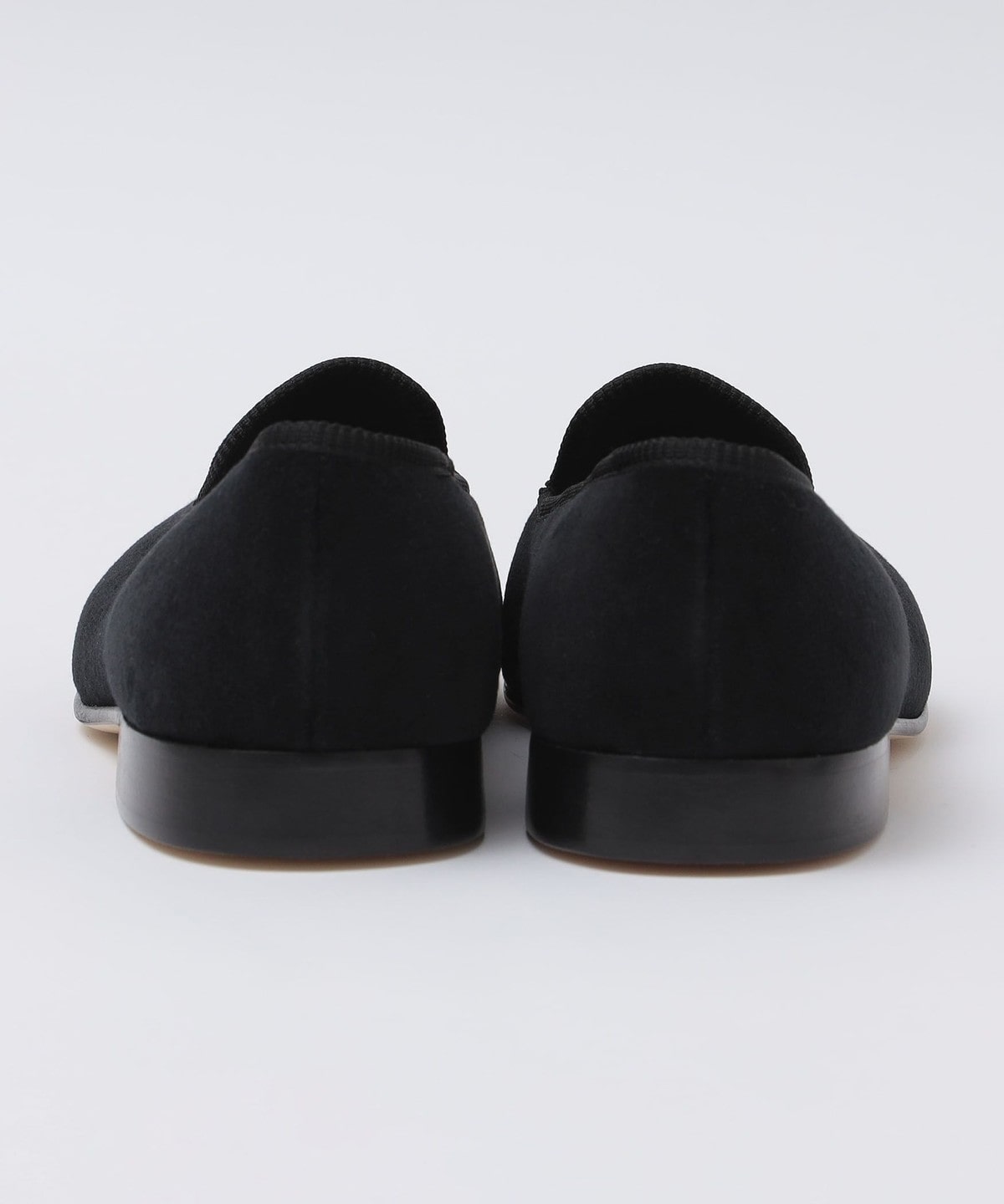 スーツスタイルやジャケットスタイルに程よく抜け感やアクセントを与えることができるベルベットのルームシューズ。