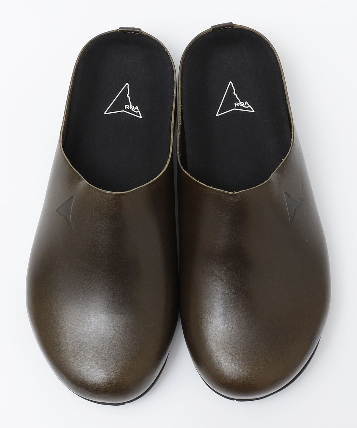 ROAのフェダイアクロッグは、上質な光沢のあるオリーブ色のバケッタレザーを使用し、実用的なシルエットに洗練されたテイストを加えています。