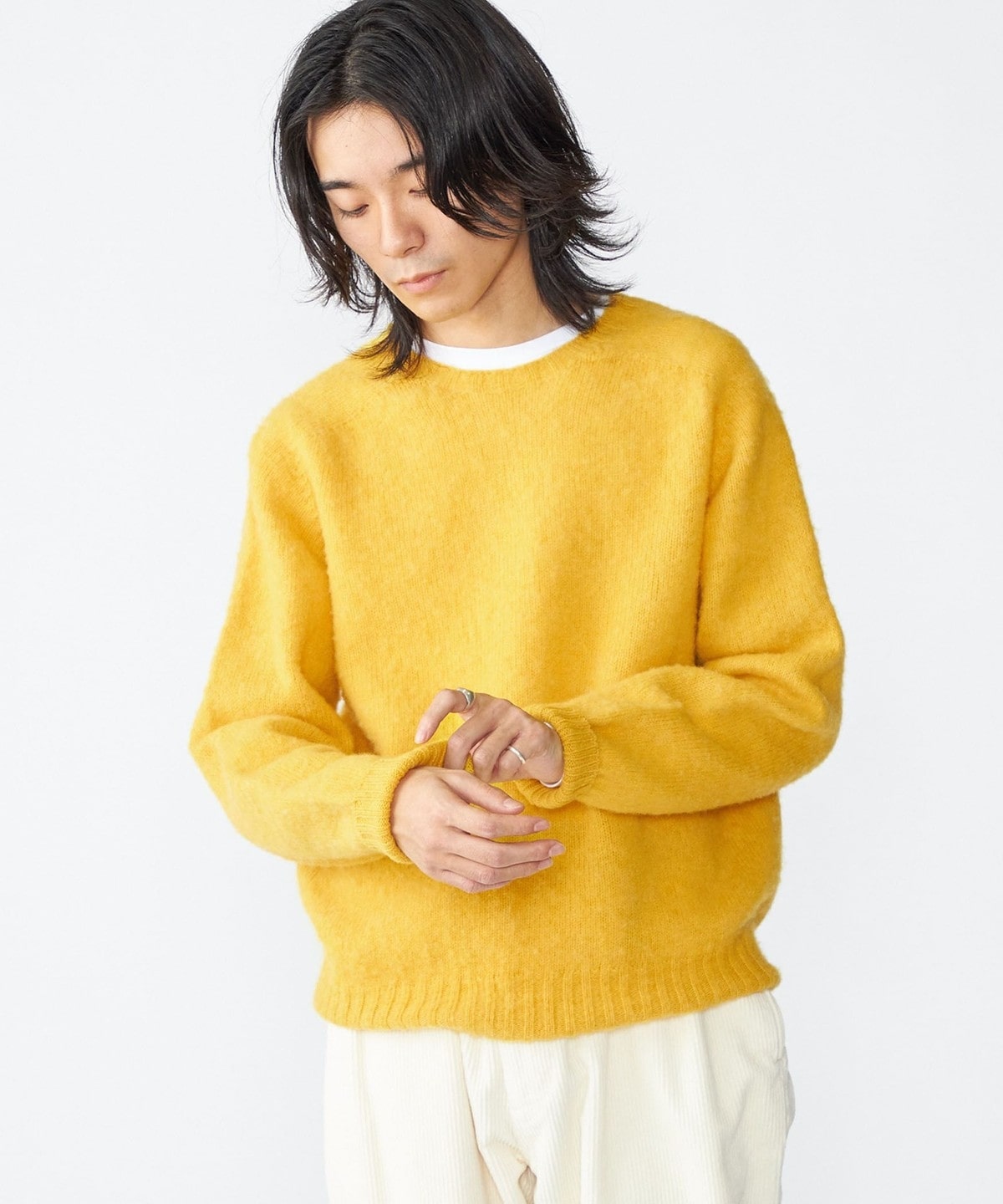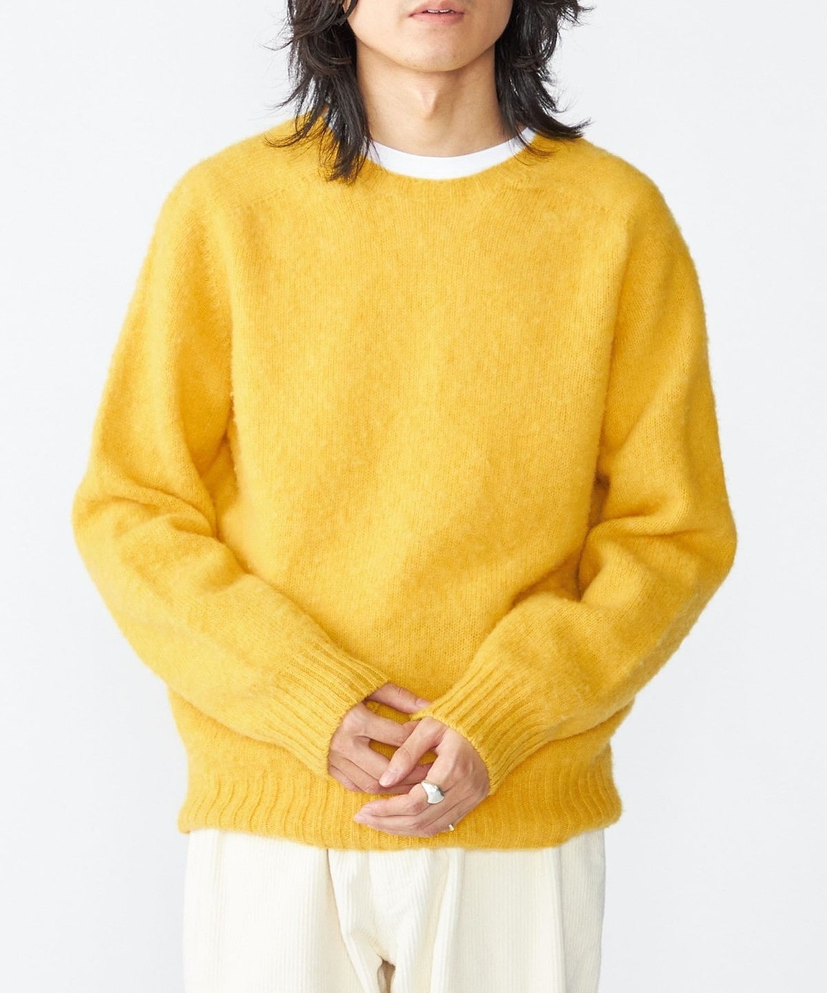 4. 【SHIPS別注】HARLEY OF SCOTLAND: ウール シャギー クルーネック ニット イエロー