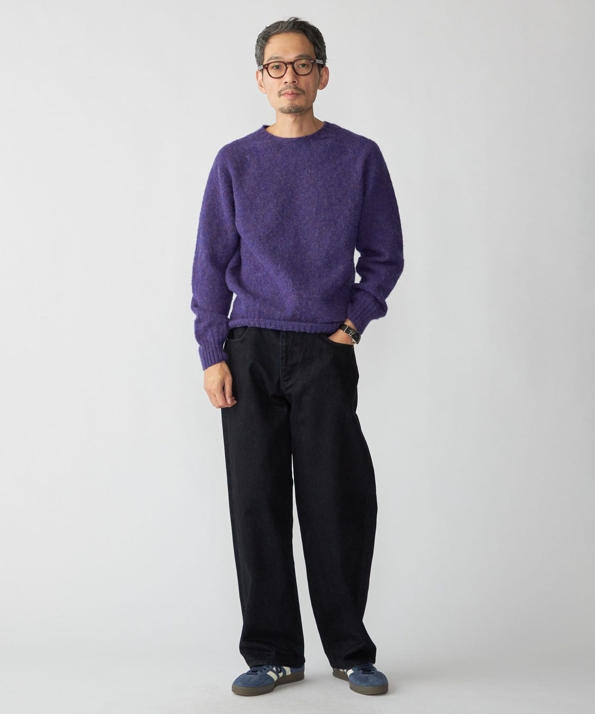 1. 【SHIPS別注】HARLEY OF SCOTLAND: ウール シャギー クルーネック ニット バイオレット