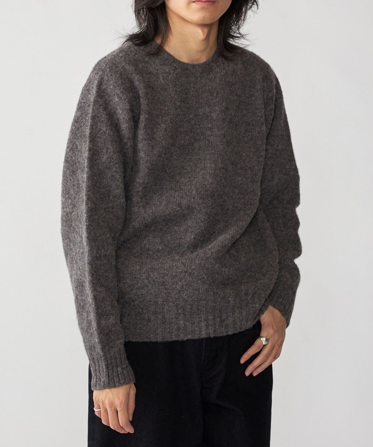 2. 【SHIPS別注】HARLEY OF SCOTLAND: ウール シャギー クルーネック ニット ダークグレー