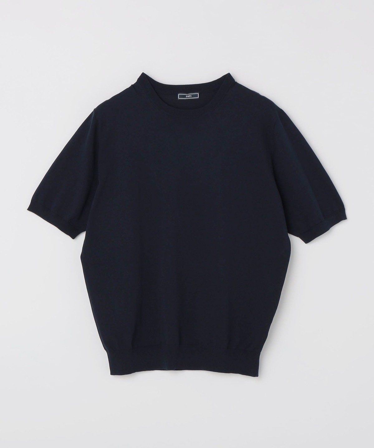 1. SHIPS:〈接触冷感〉 ICE COTTON クルーネック ショート スリーブ ニット Tシャツ ネイビー