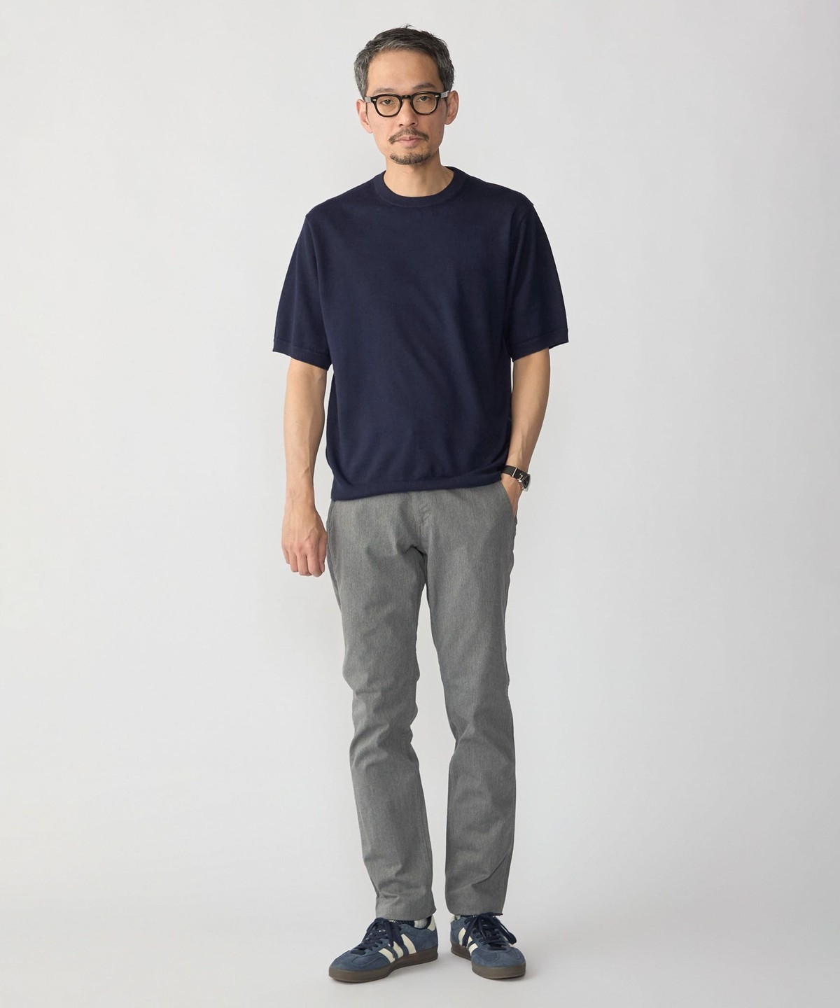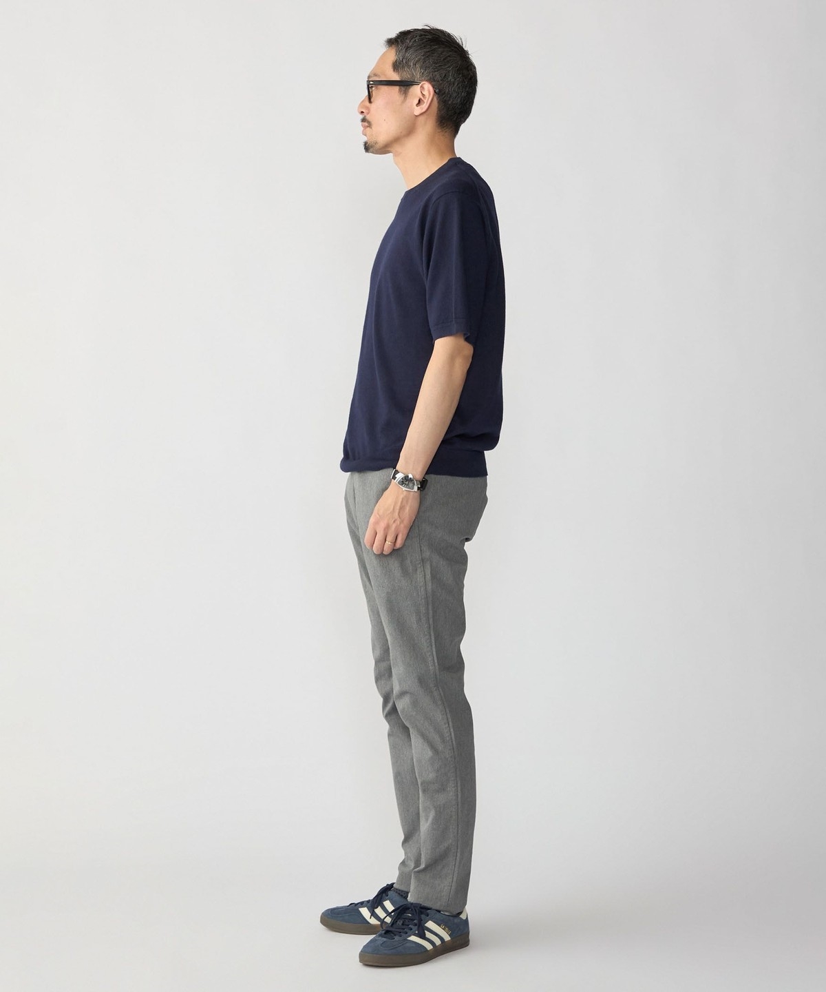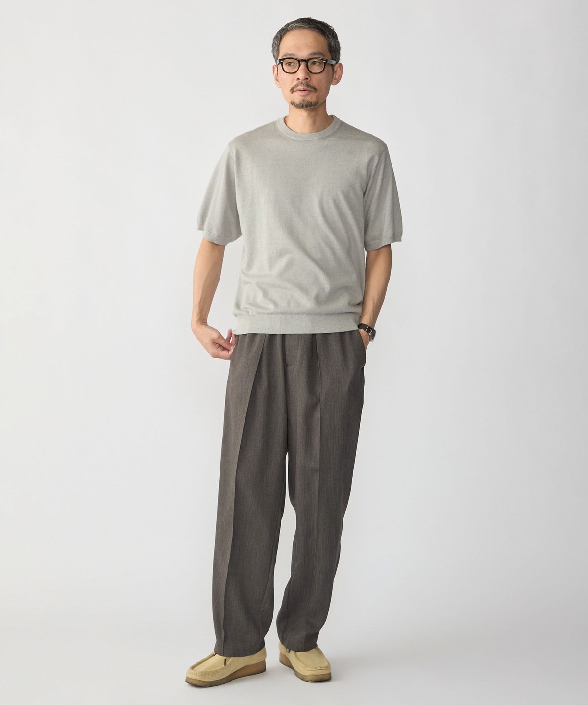 パンツはややリラックスしたシルエットからテーパードシルエットまで幅広くコーディネートが可能。