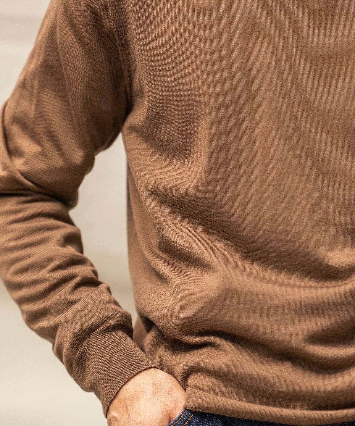 4. SHIPS:〈手洗い可能〉HANDFRAME 16ゲージ モックネック ニット ブラウン