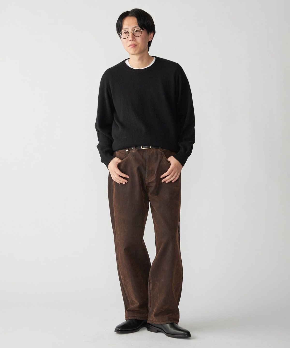 シンプルなデザインですがカシミヤの上品な光沢とヌメリのある表情が、1枚で着用してもどこか上品な雰囲気の漂う1枚。