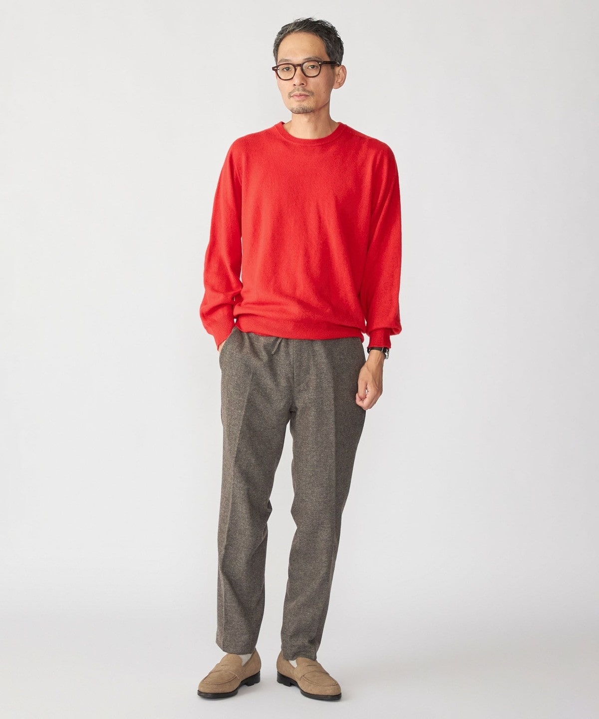 2. SHIPS: 〈手洗い可能〉12ゲージ ホールガーメント カシミヤ クルーネック レッド