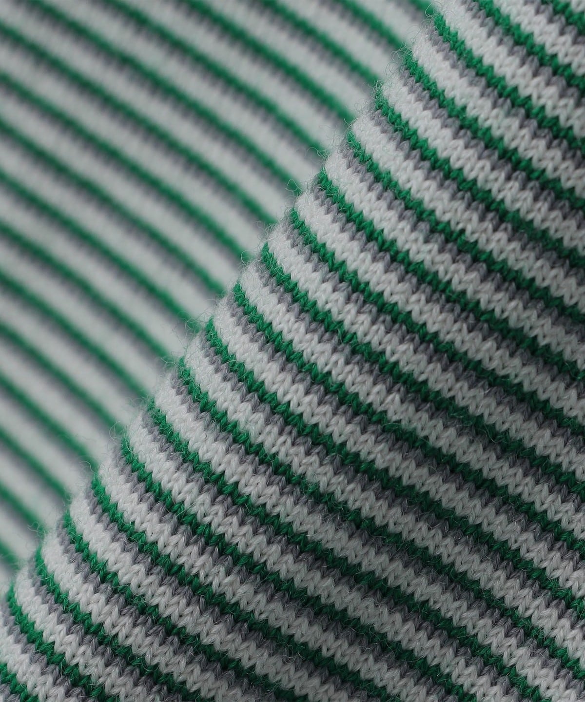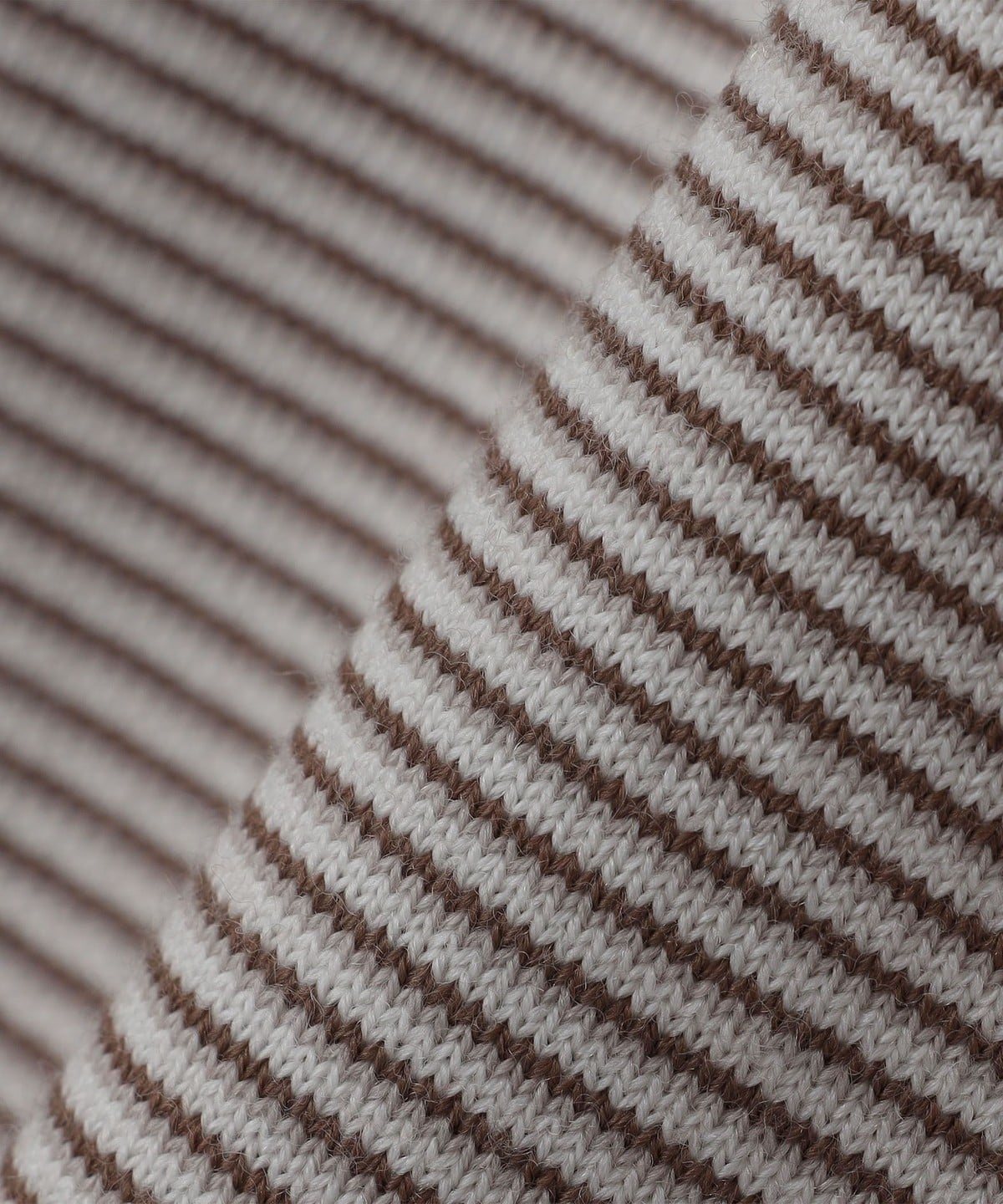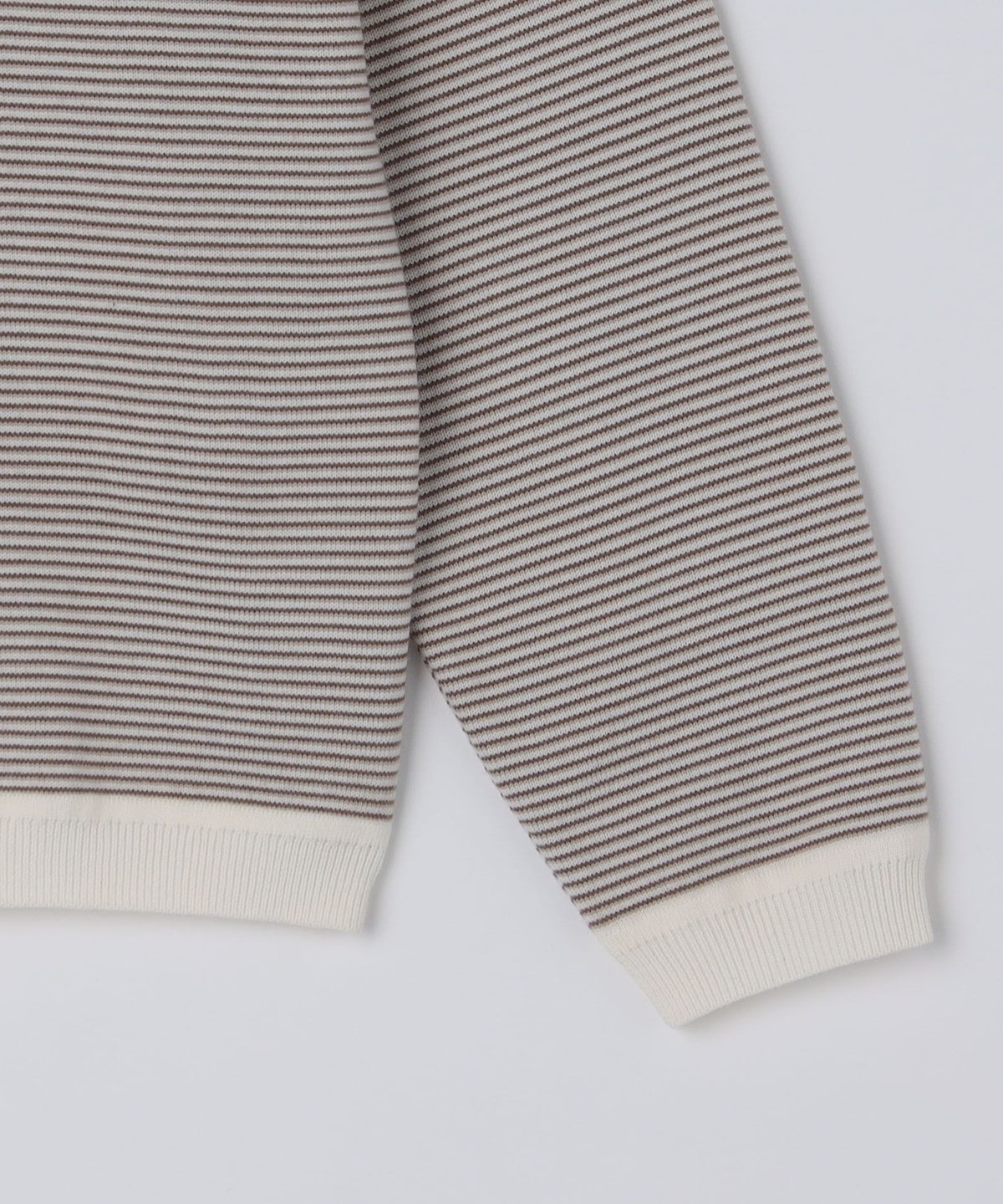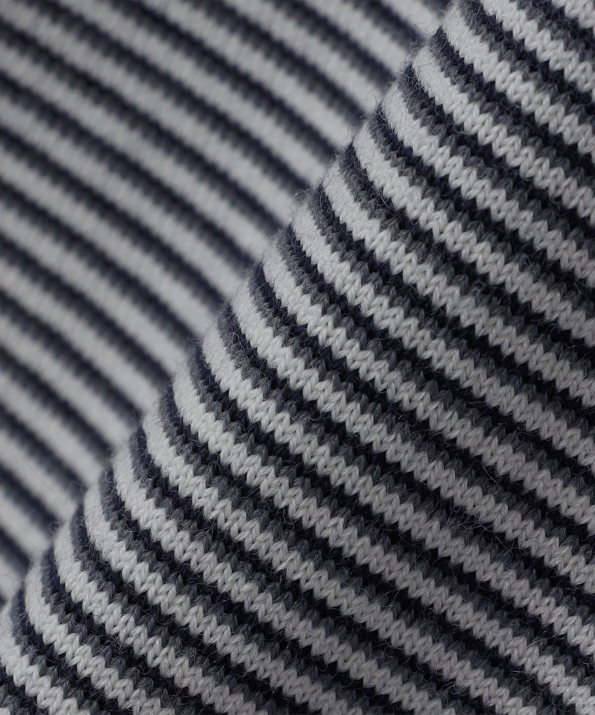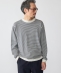 【デザイン】リラクシーな程よくゆとりのあるシルエットのマイクロボーダークルーネックプルオーバー。
