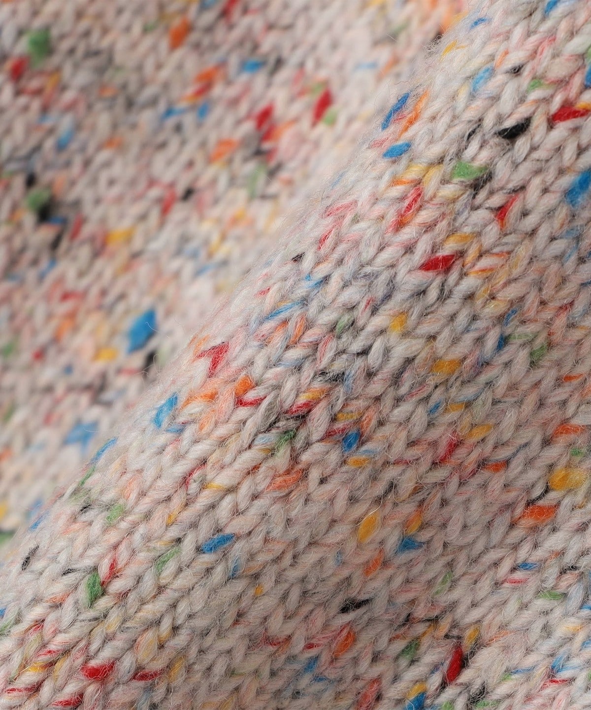 カラフルなカラーネップが入ることで表情豊かな編地になっています。