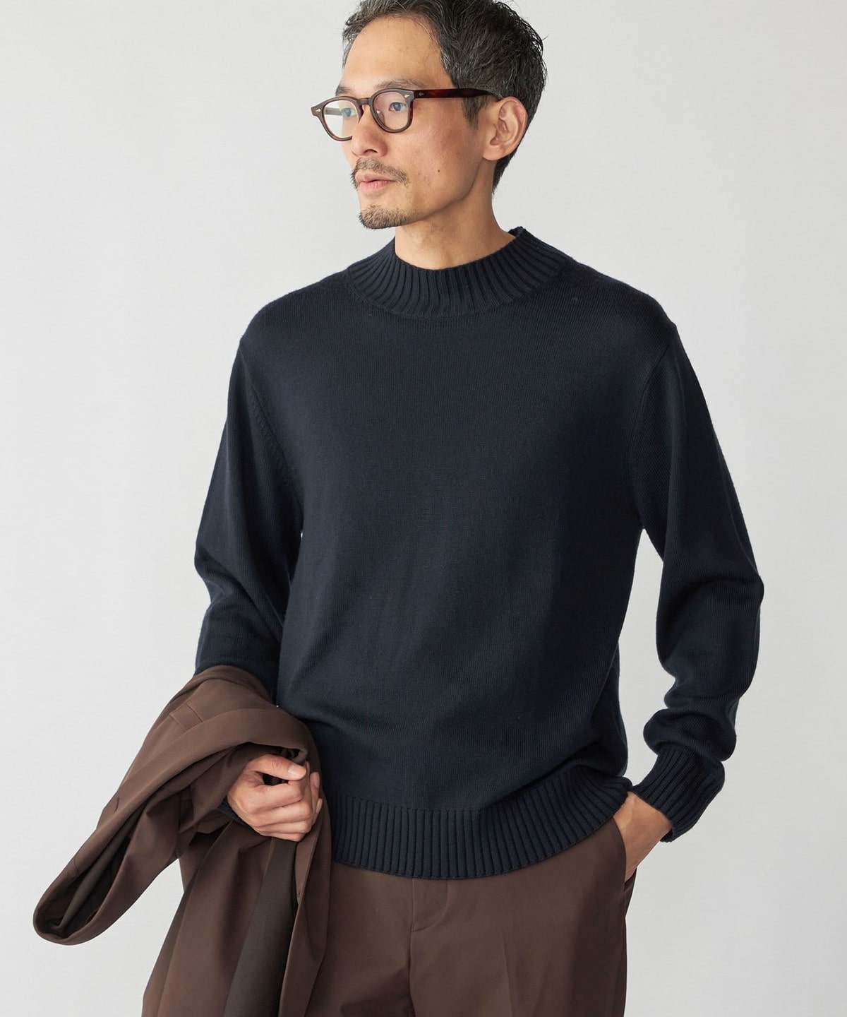 上品な印象を与えるモックネック9ゲージニット